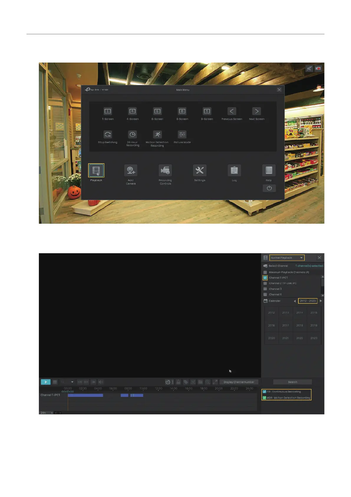 1. Right click on the Live View screen and click Playback in the pop-up Main Menu to open the