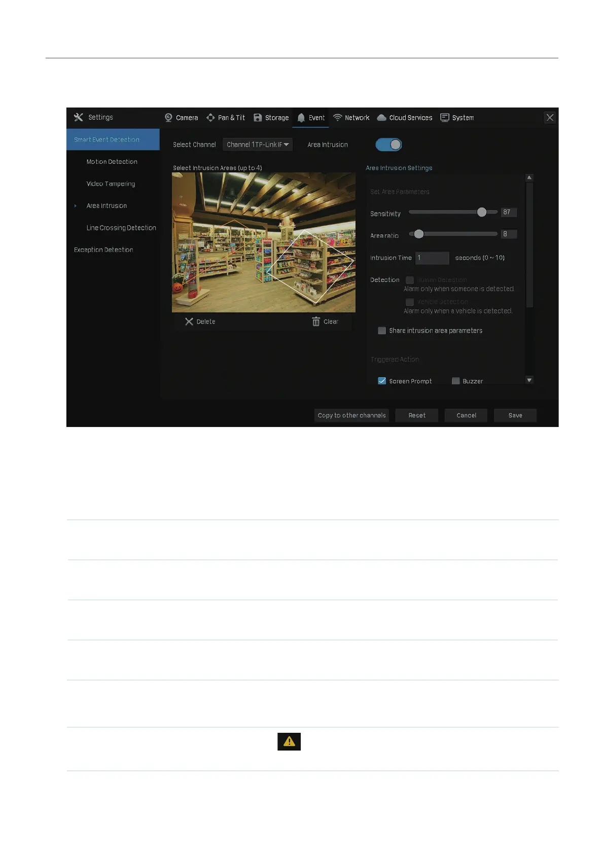 3. Draw intrusion areas on the preview screen. Select the area and configure the settings.