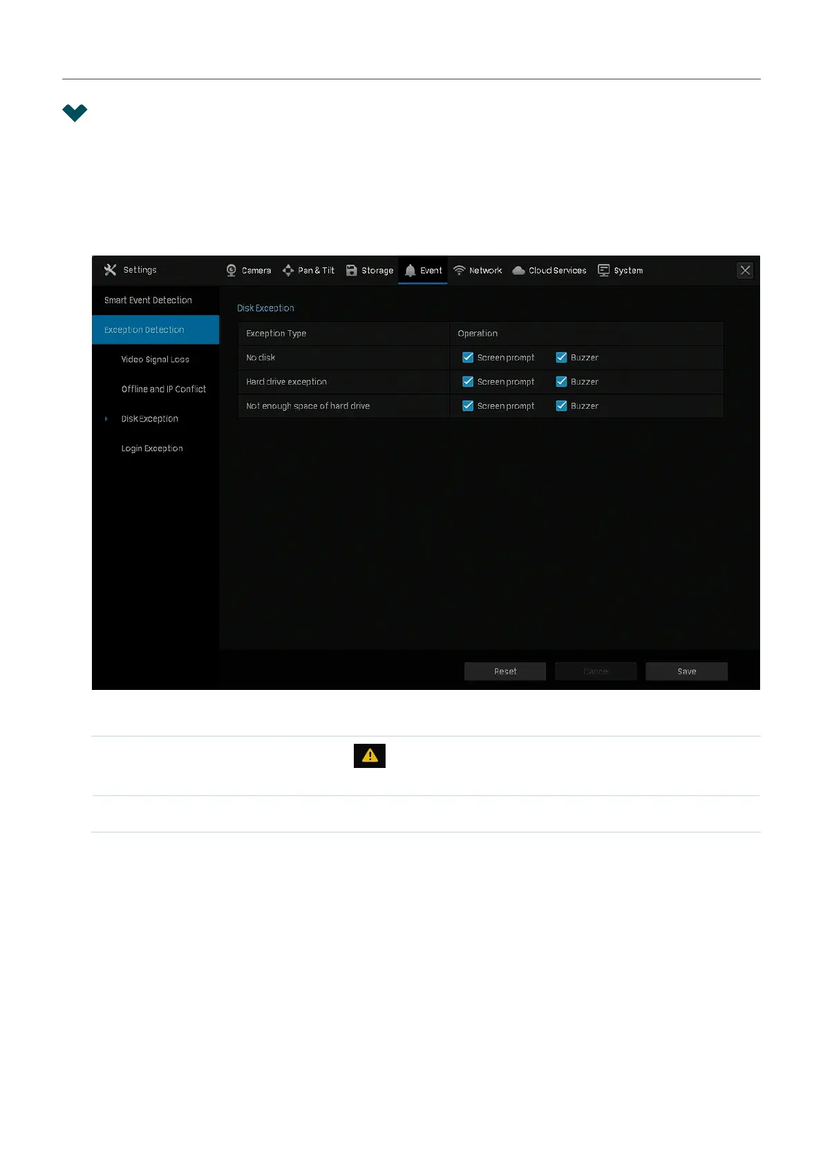 Exception Detection > Disk Exception.