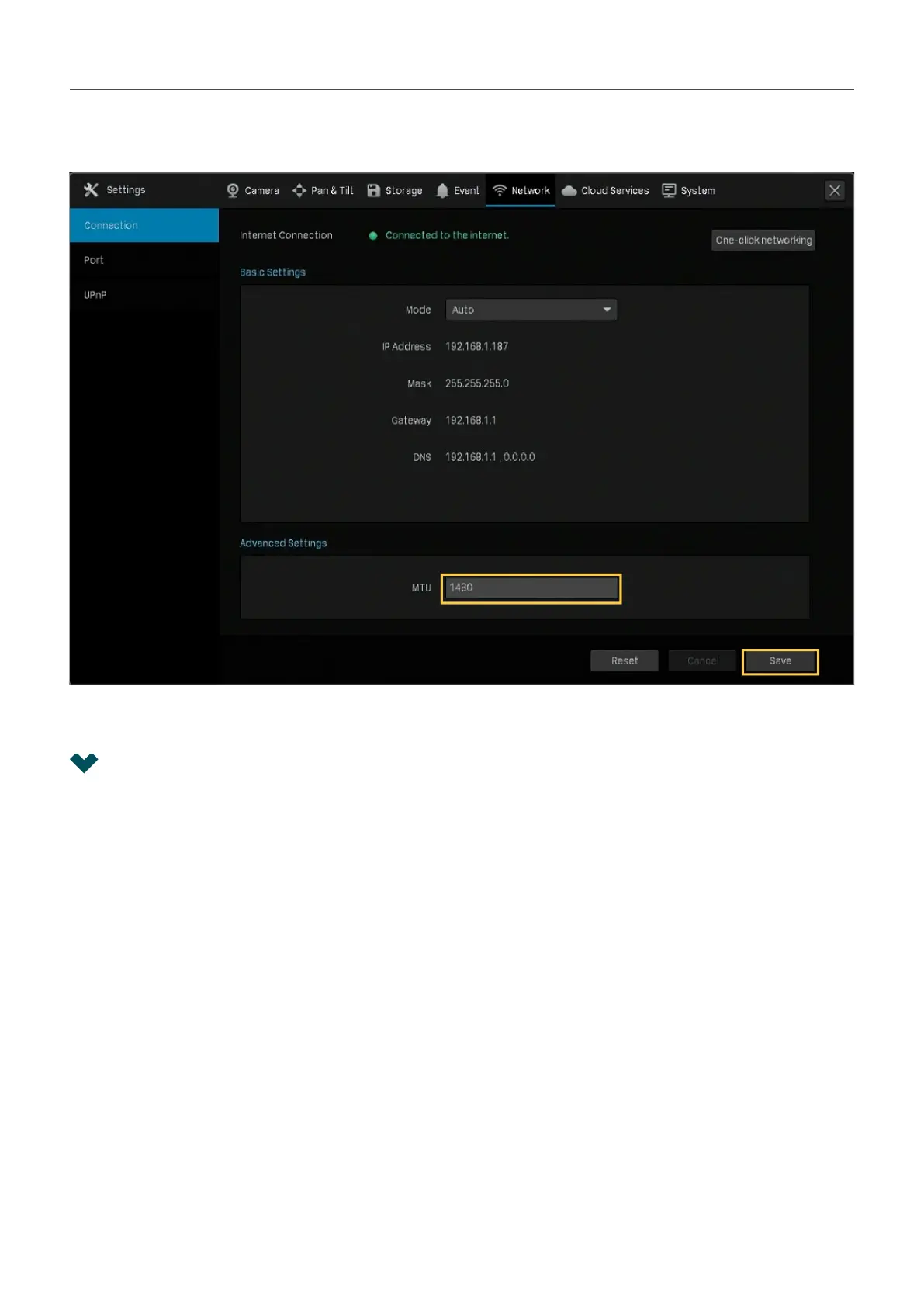 To configure MTU, right click on the Live View screen and click Settings in the Main Menu. Go to Network
