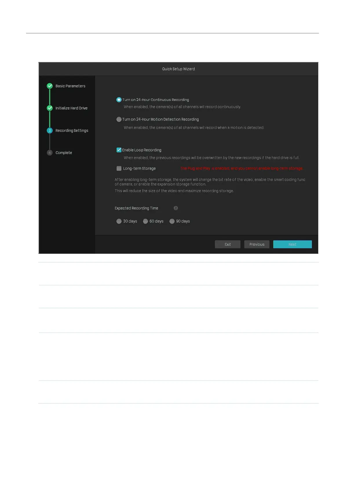 4. Set the recording schedule according to your needs. By default, the settings are applied to all