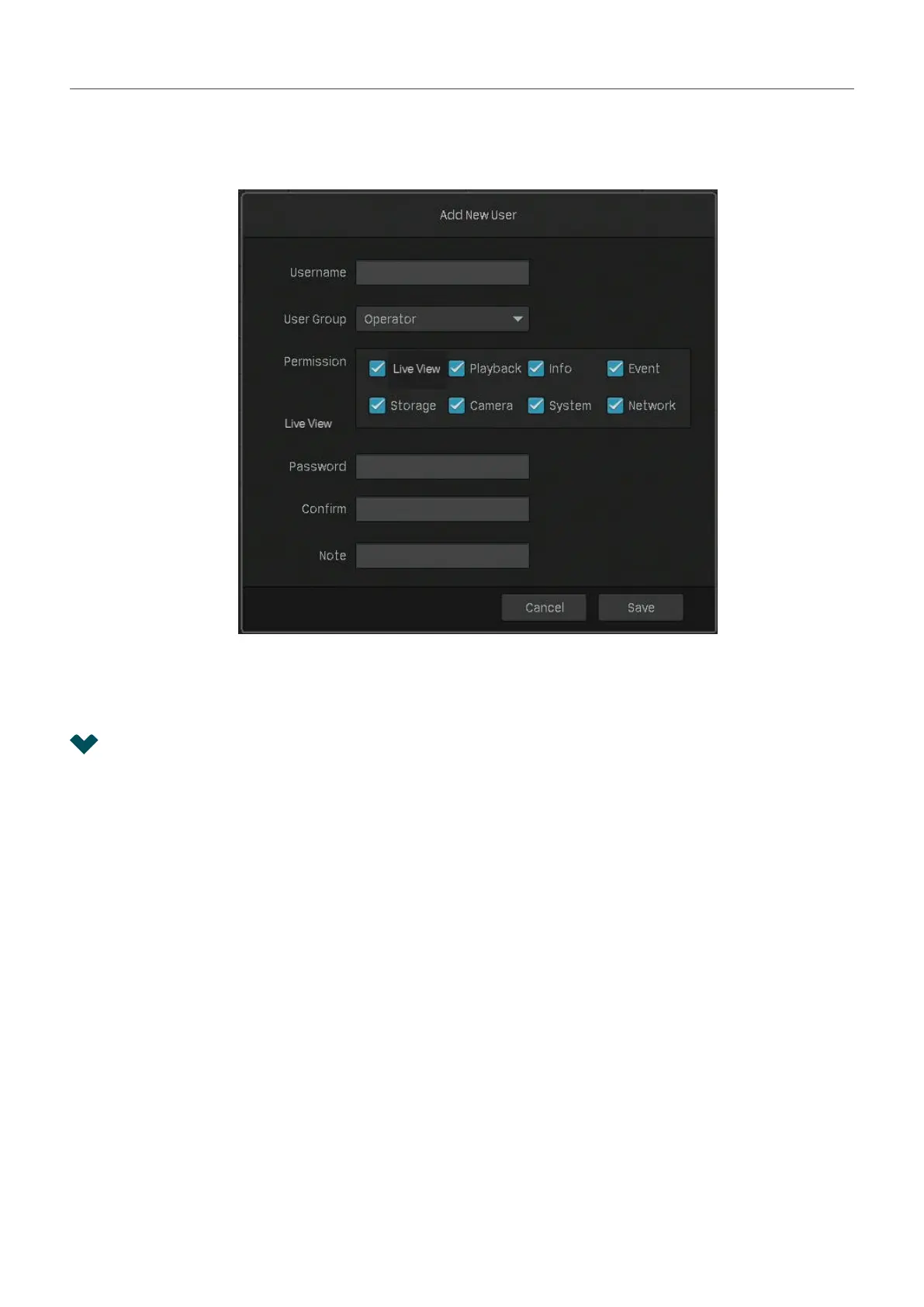 2. Enter the username and set the user level to Operator or User. The operator shares the same
