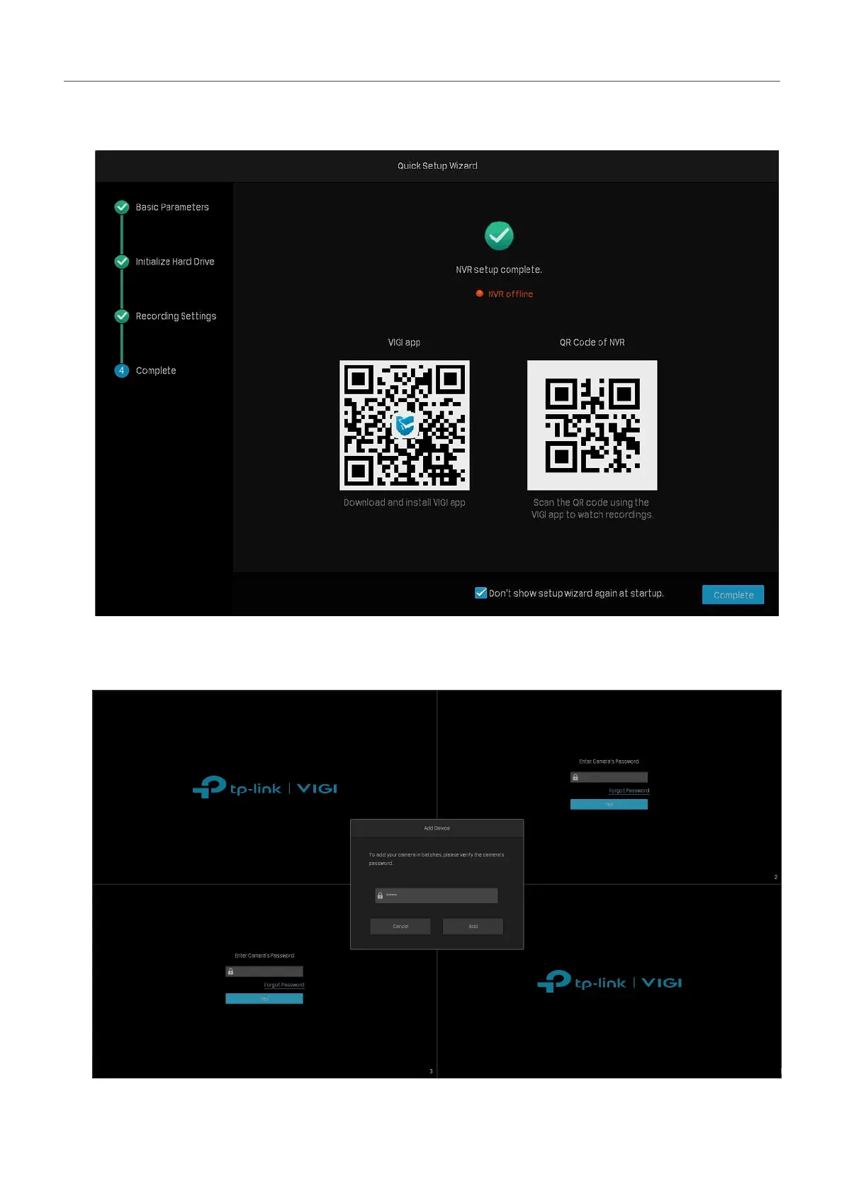 6. Click Complete to finish the quick setup. If your cameras have passwords, enter the password to