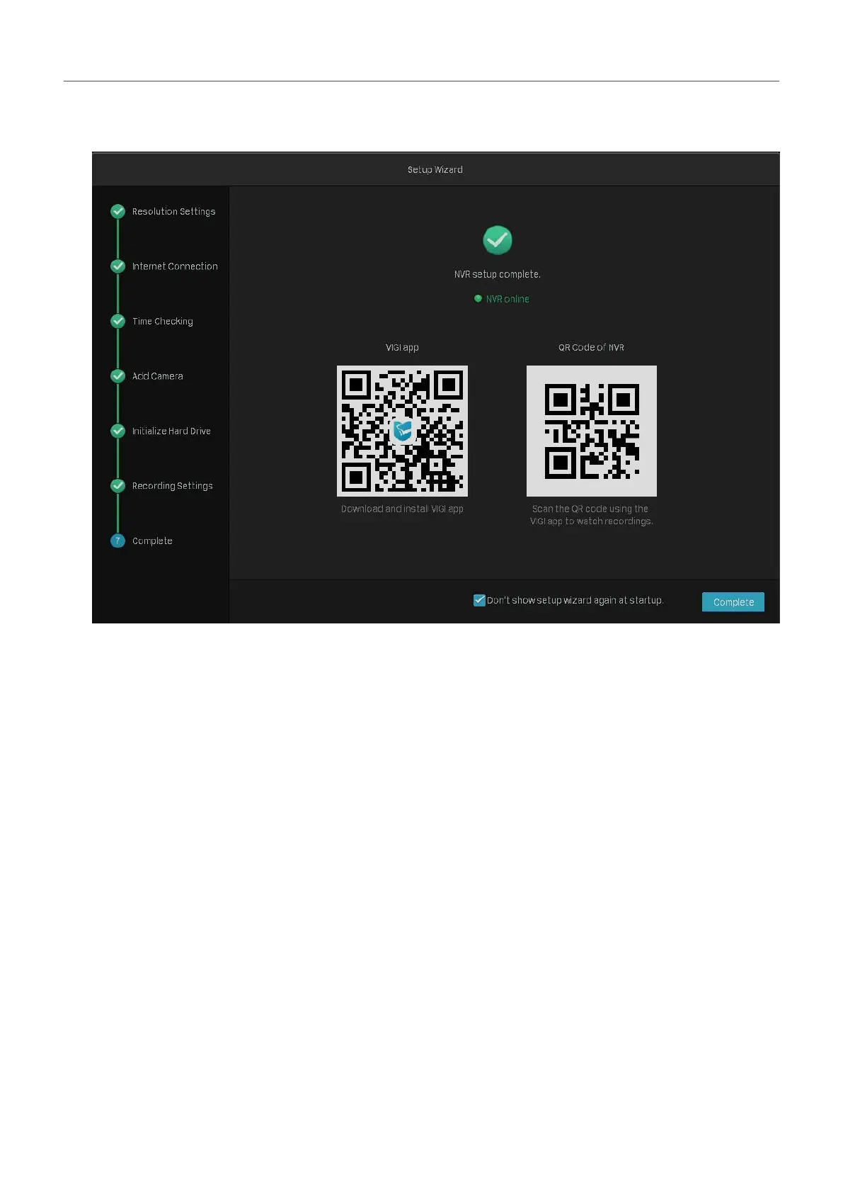 7. (Optional) Scan the QR code on the left to download the VIGI app, then scan the QR code on the