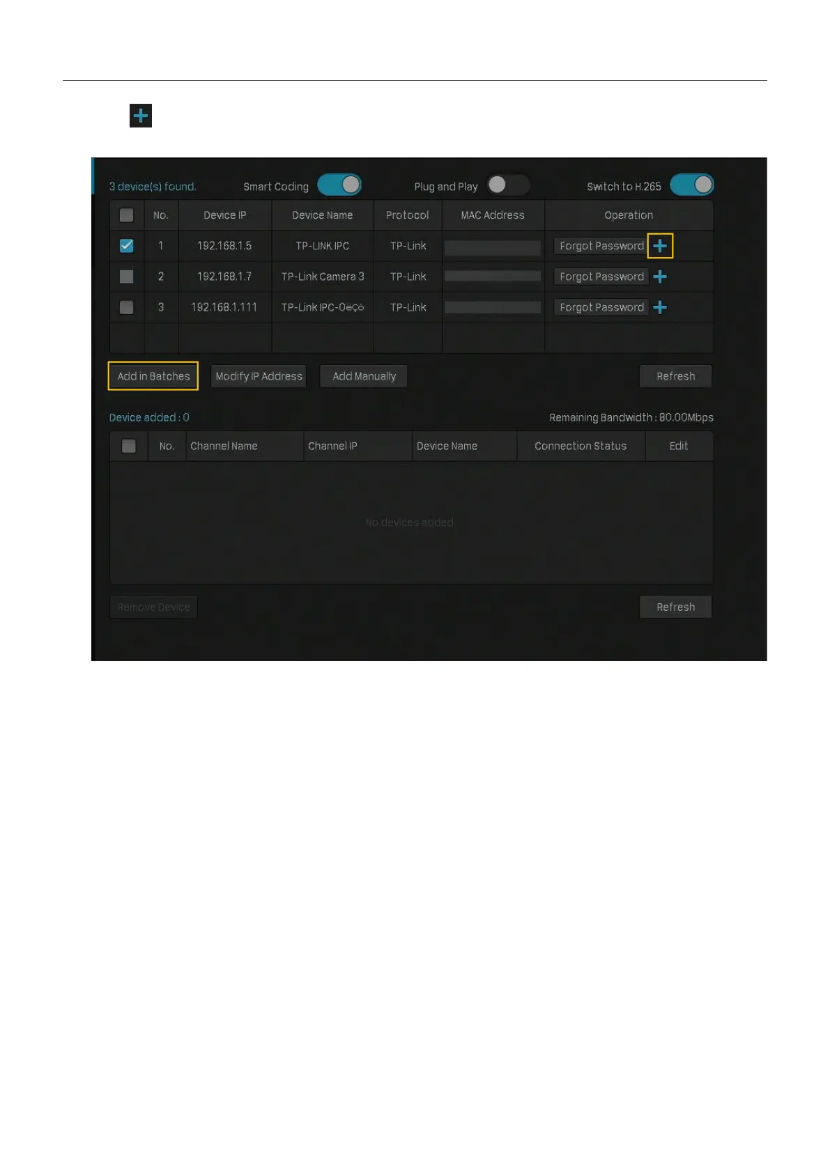 2. Click to add a single camera. If you want to add cameras in batches, click the checkbox of