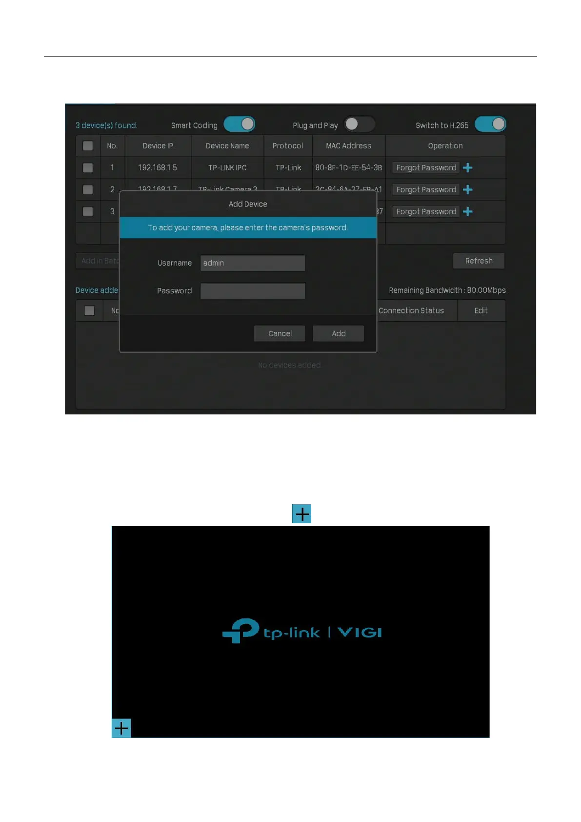 3. Enter the password manually to verify it. Click Add. After the cameras are added, you can view the