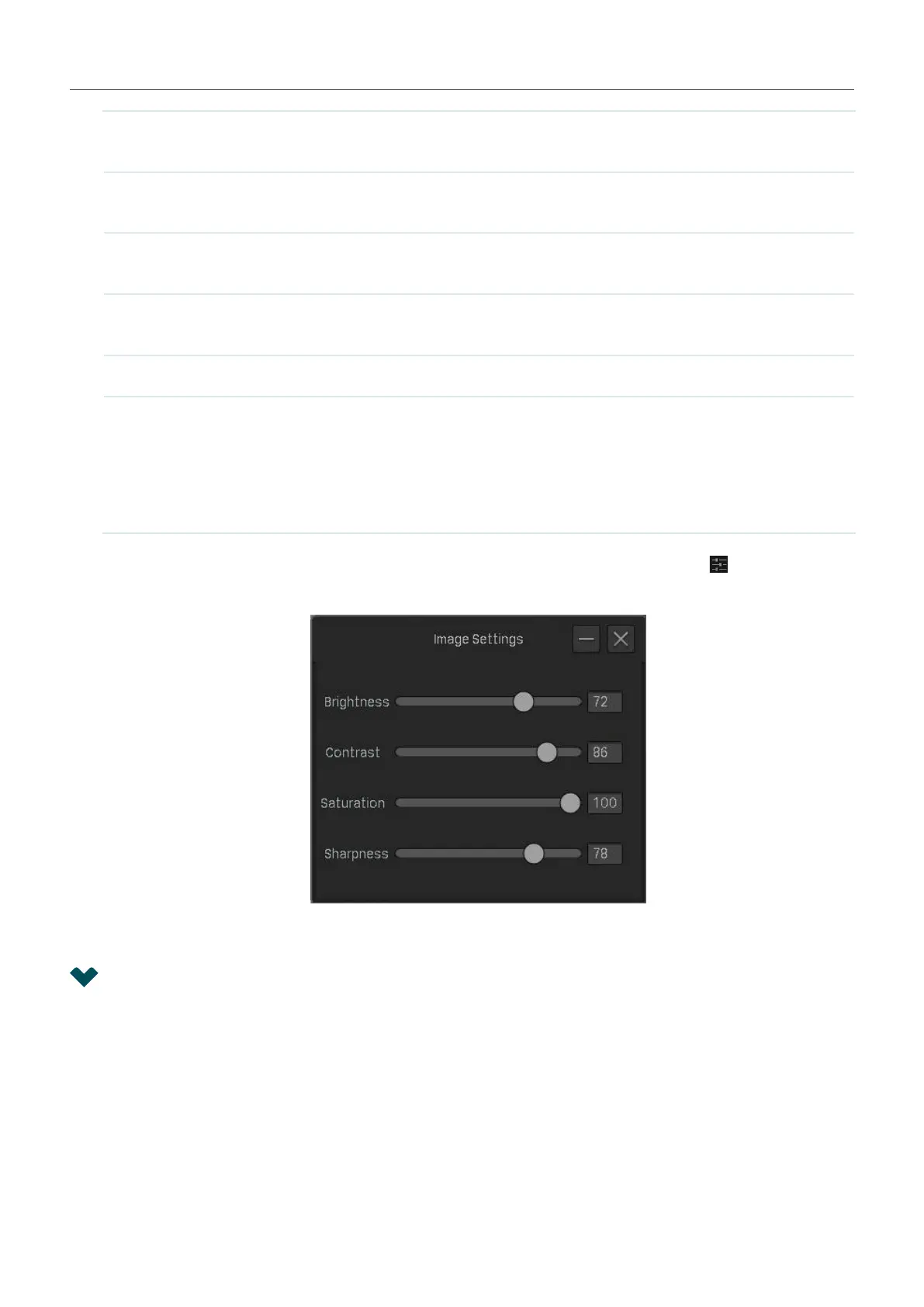 Brightness Adjust the brightness of image. The image gets brighter when the value