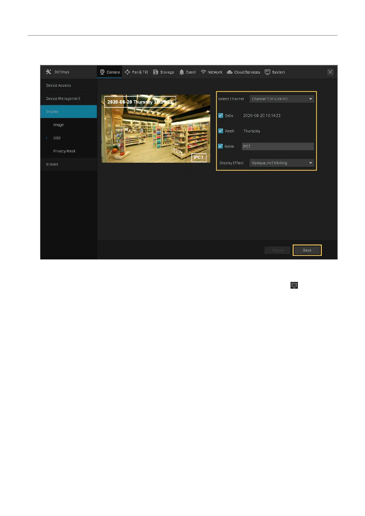 Note: If you change Name in the OSD setting, you also change the camera name.