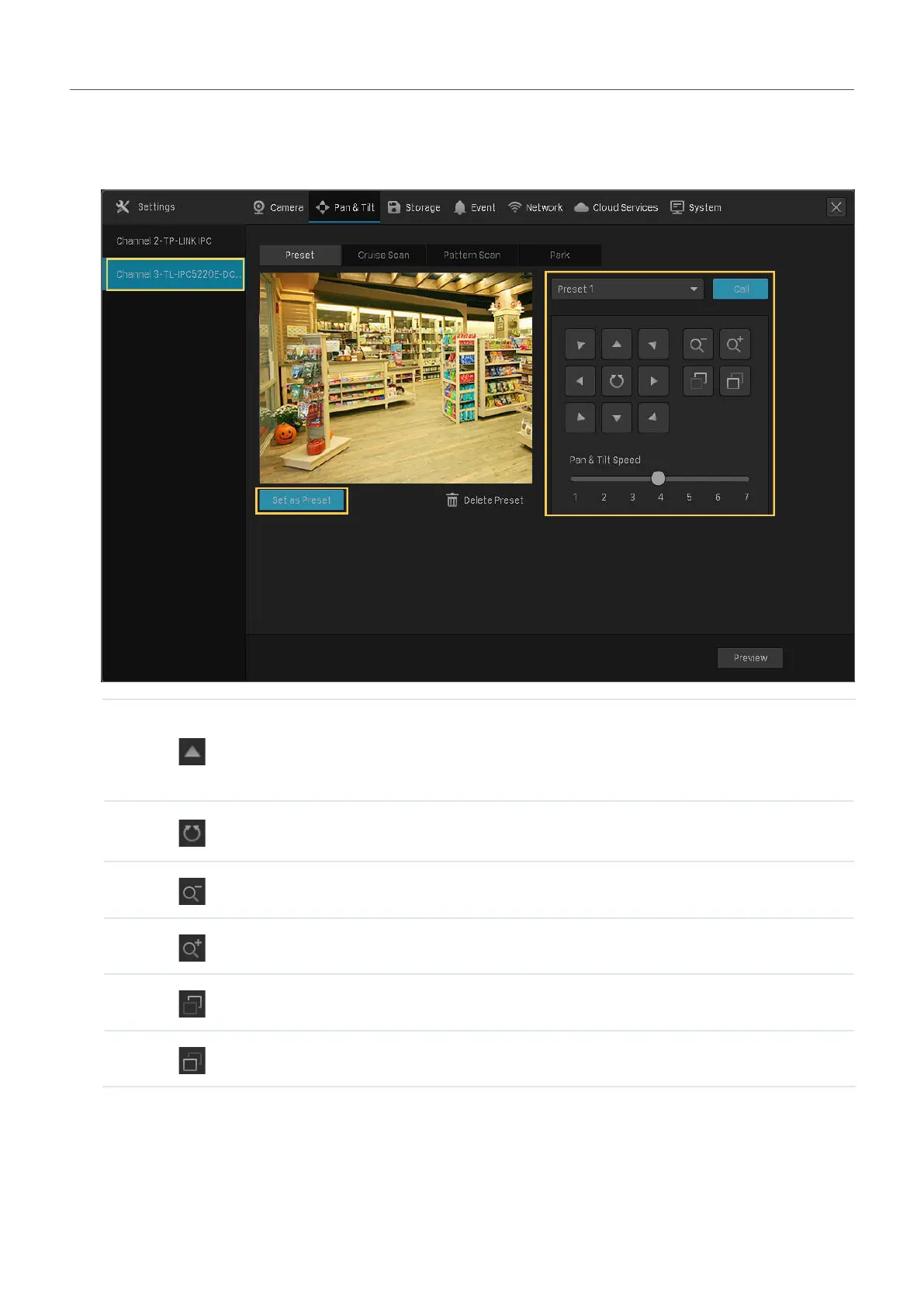 down list. Click the buttons to adjust the position and adjust the slide bar to specify the Pan&Tilt
