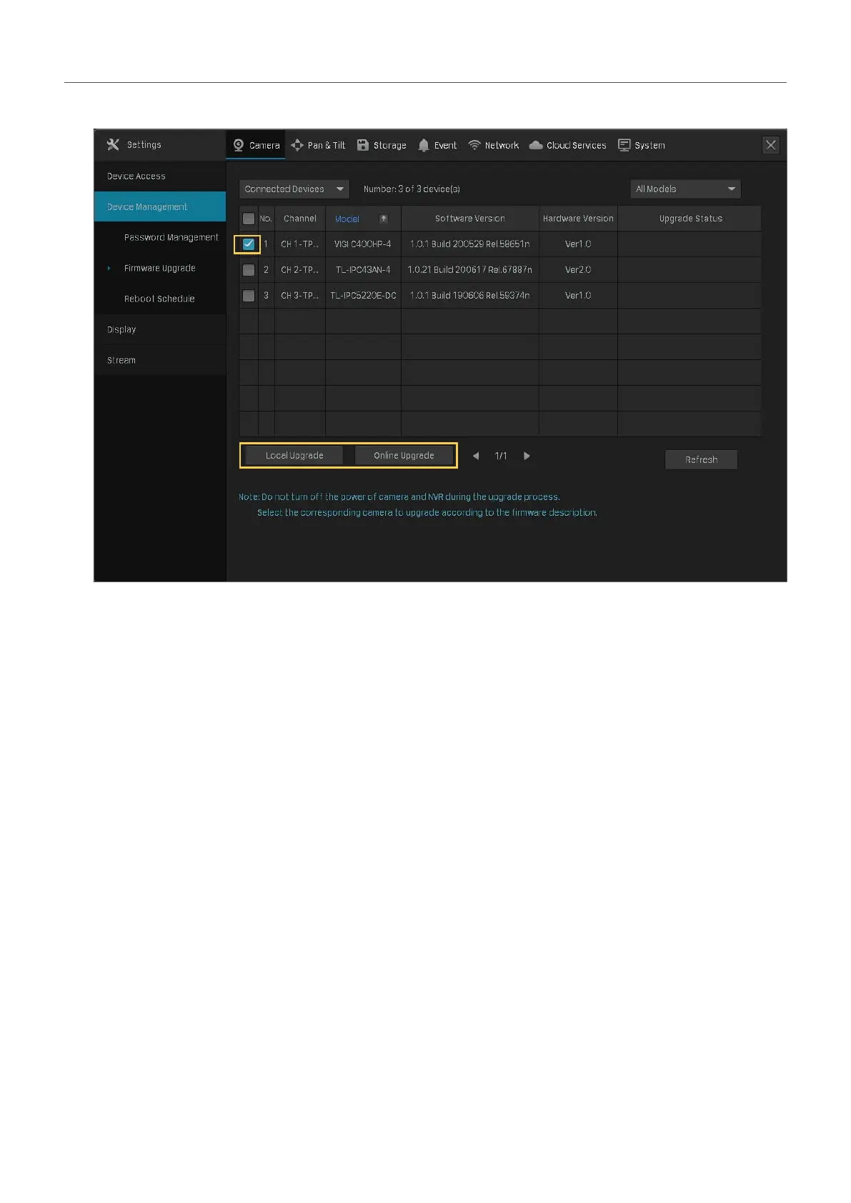3. Select the cameras and click Local Upgrade or Online Upgrade to upgrade them.
