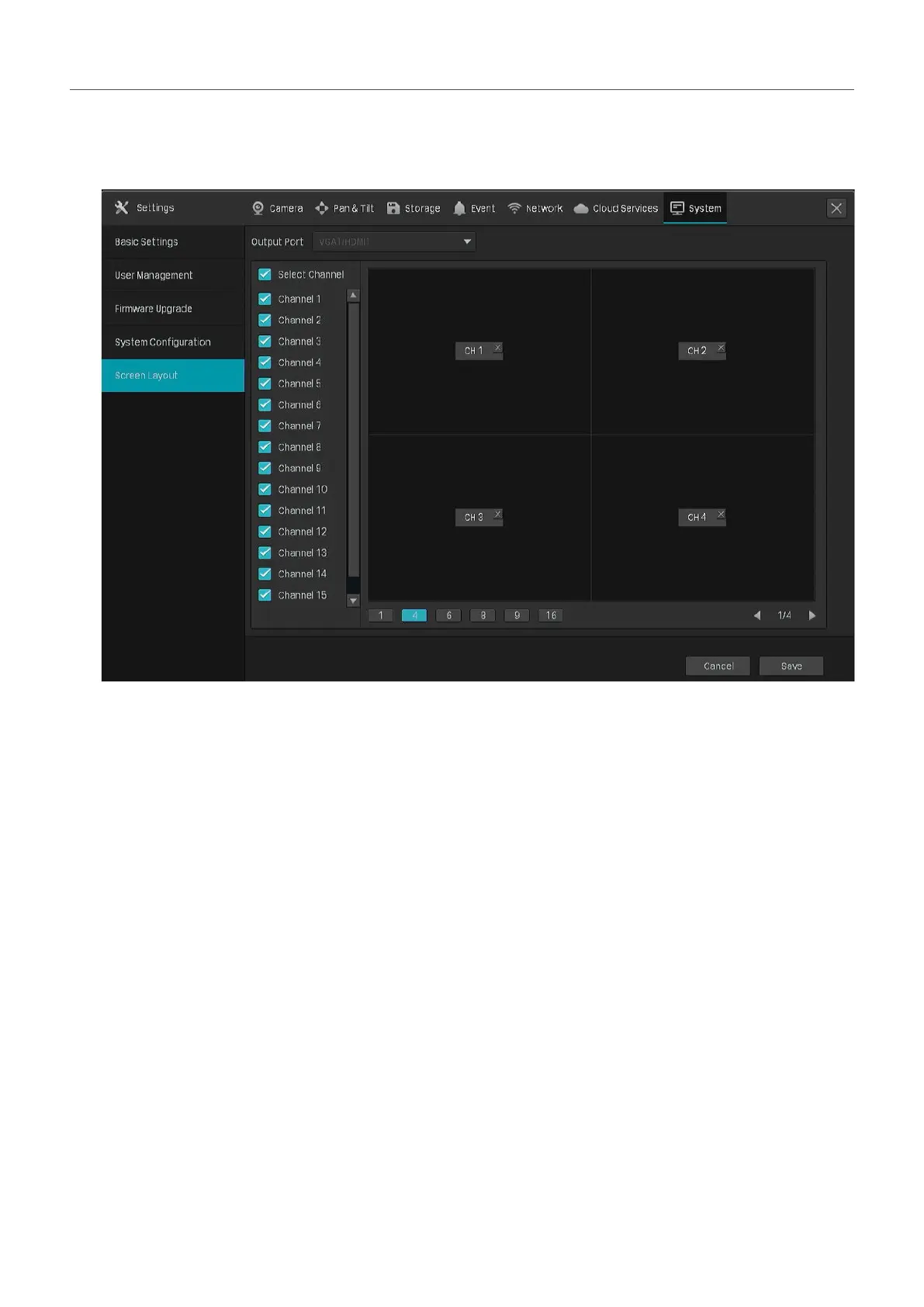 screen. Click a square and click the checkbox of a channel to rearrange the channel in Live View.