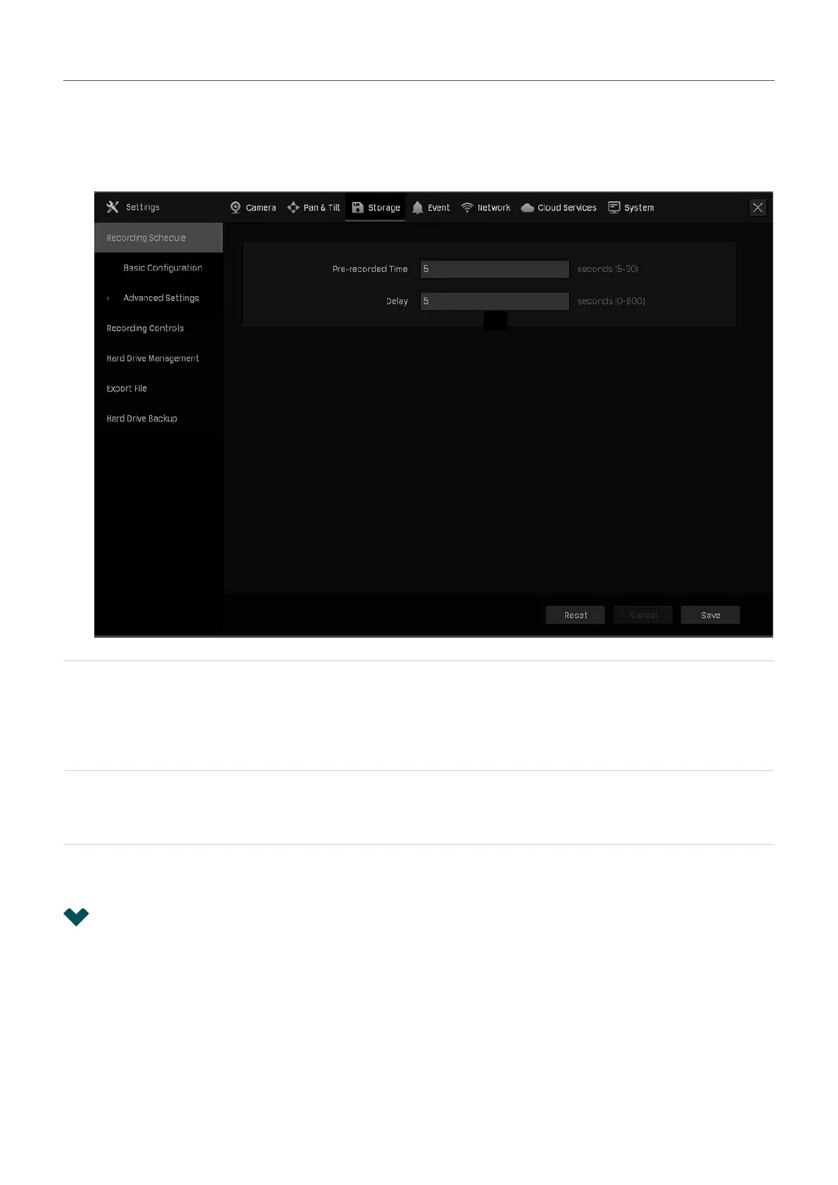 To configure the pre-recorded and delay time for cameras, go to Storage > Recording Schedule >