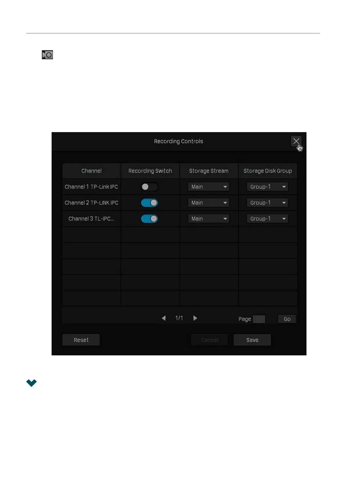 2. (Optional) Select the recording stream and disk group for storage.