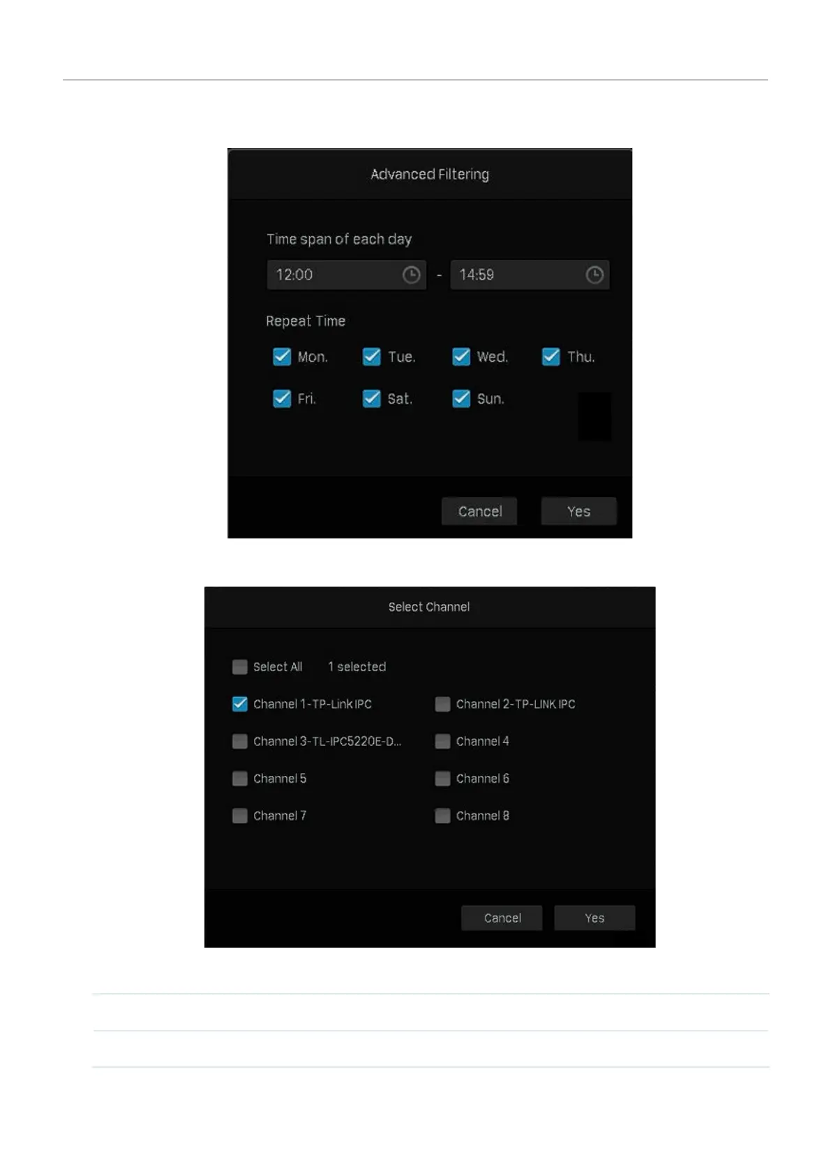 6. Click Channel to select Channel 1 for recording export. Then click Yes .