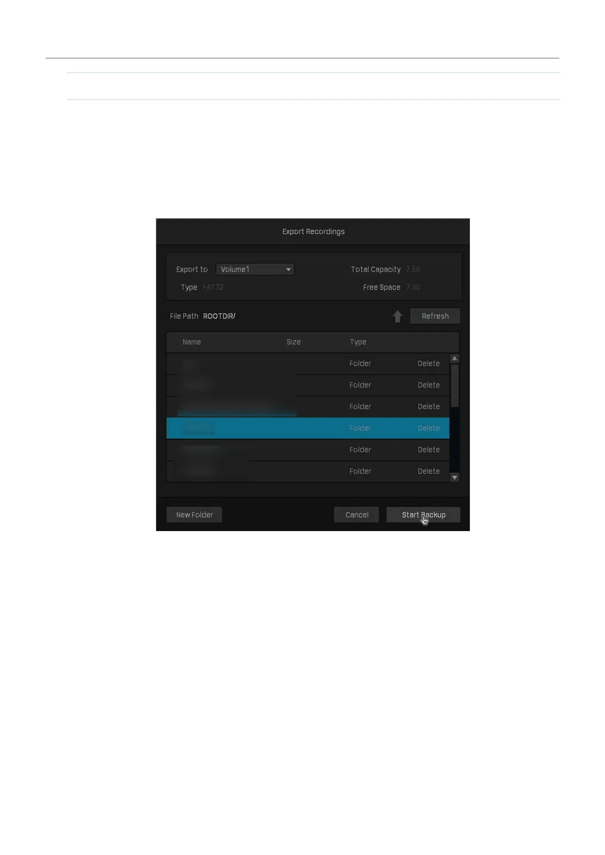10. Select the folder or create a new folder and click Start Backup to export the files to your external