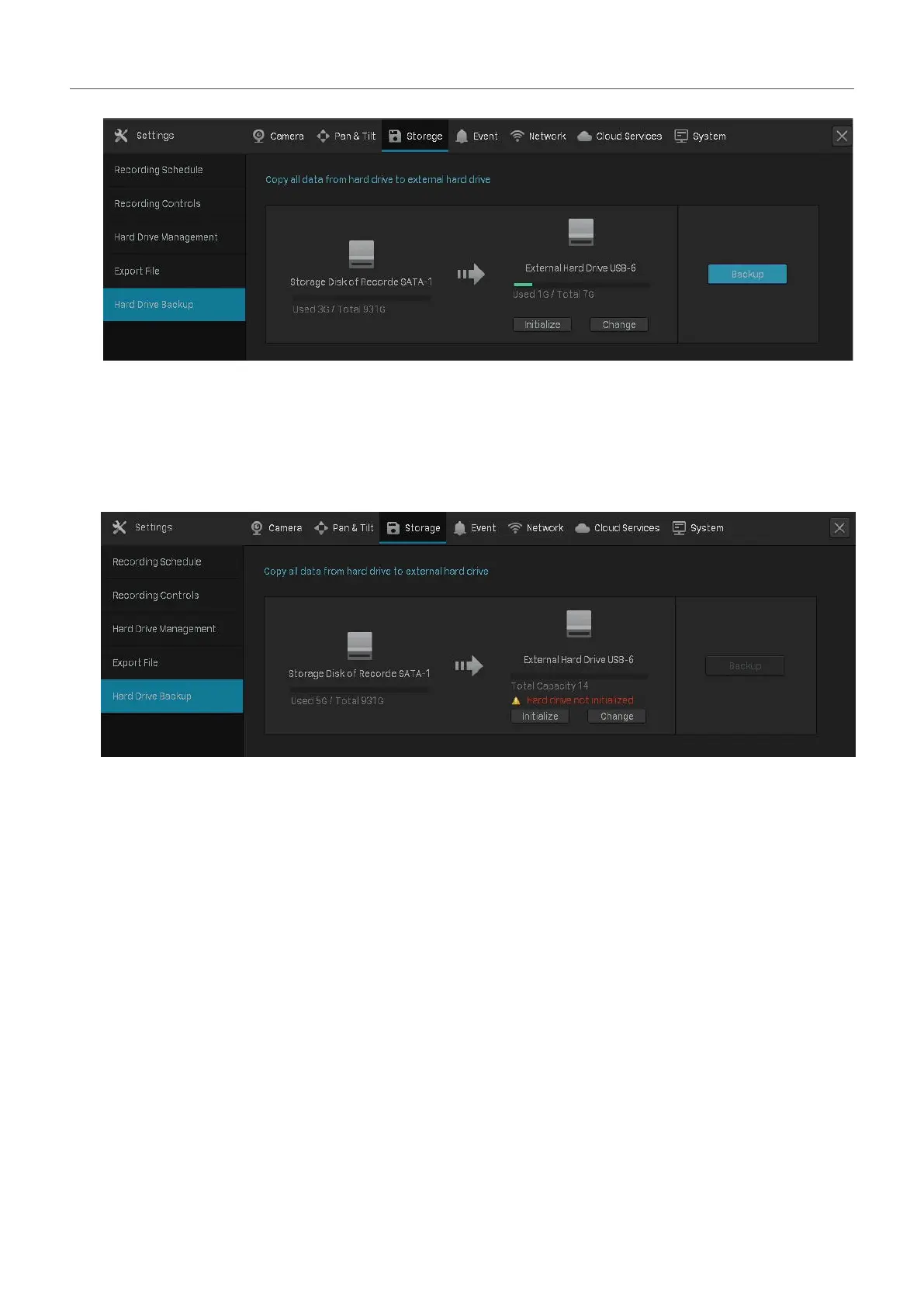 • If the free space of your external hard disk is not big enough for backing up recordings stored in