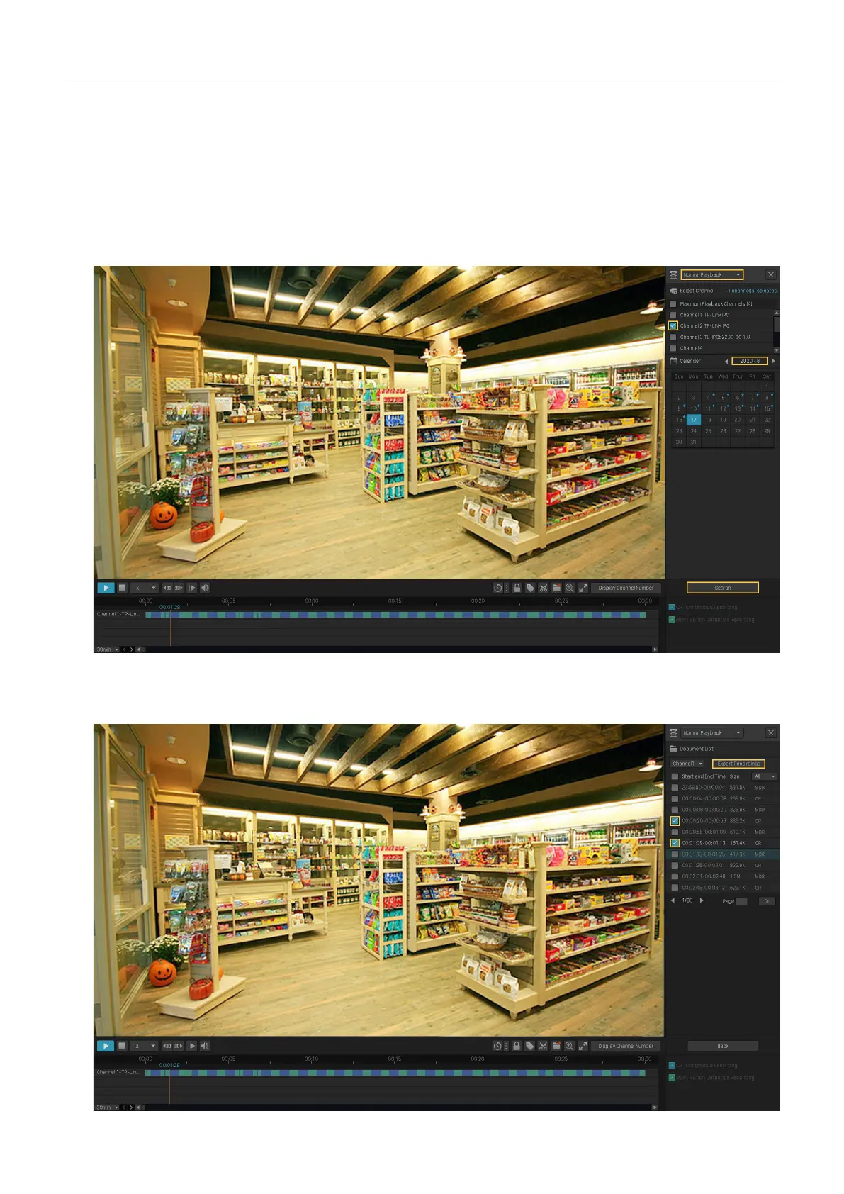 In Playback, you can easily search the desired recordings based on channel, time, recording types, tags,