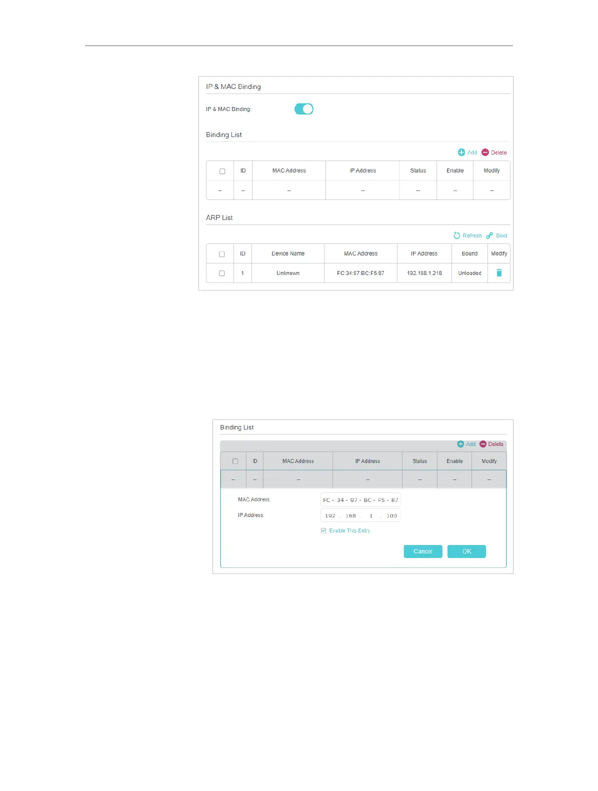 1 ) Select the device(s) to be bound in the ARP List.