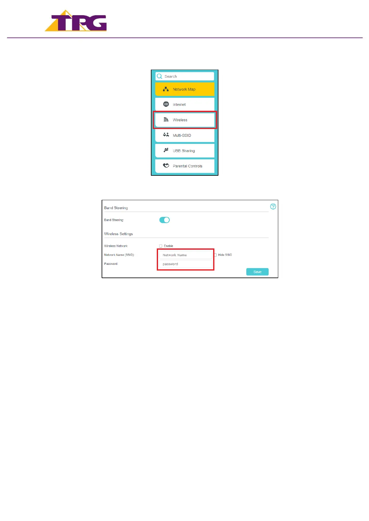 5. Enter your new Network name (SSID) and Password as desired.