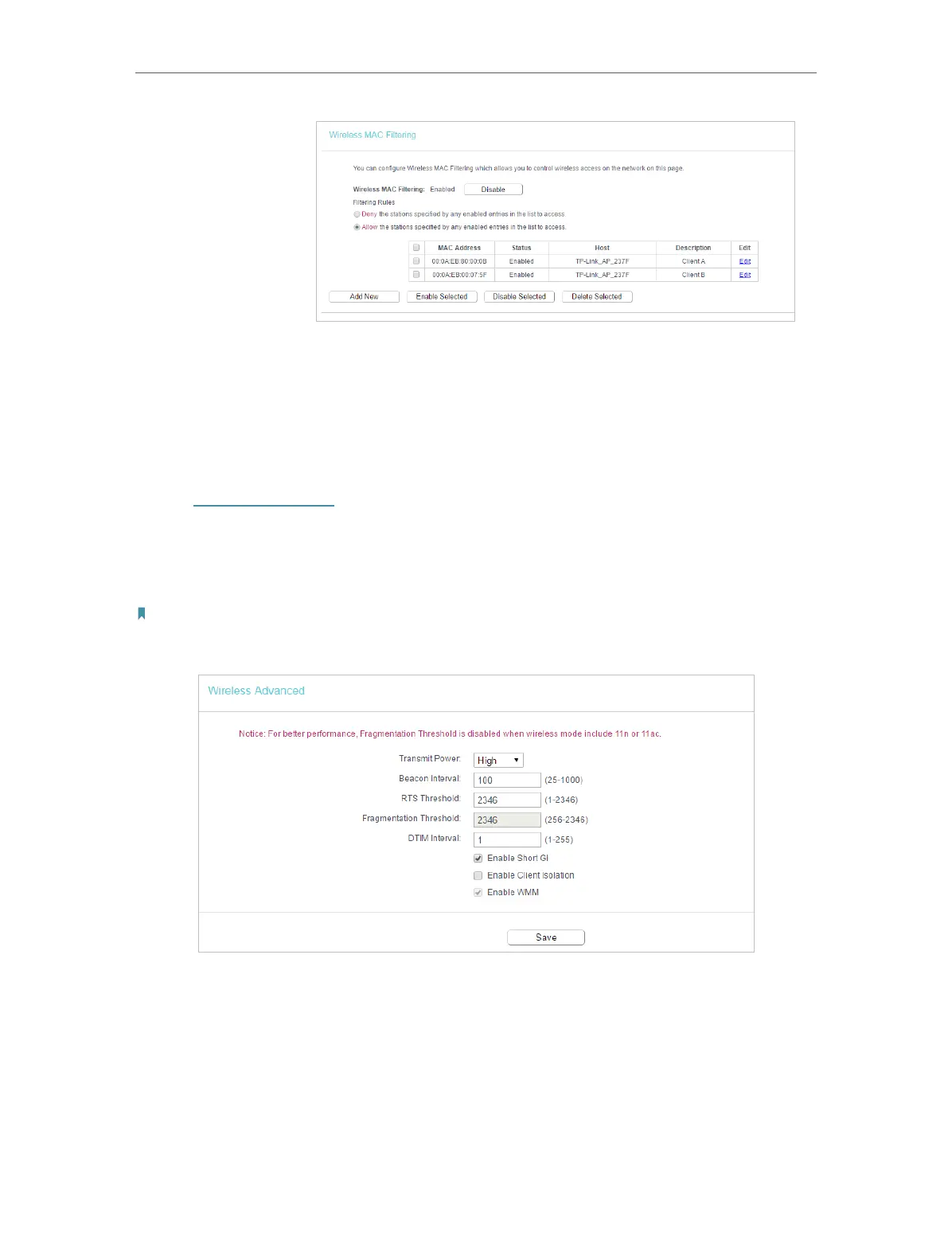 • Beacon Interval - Enter a value between 40-1000 milliseconds for Beacon Interval