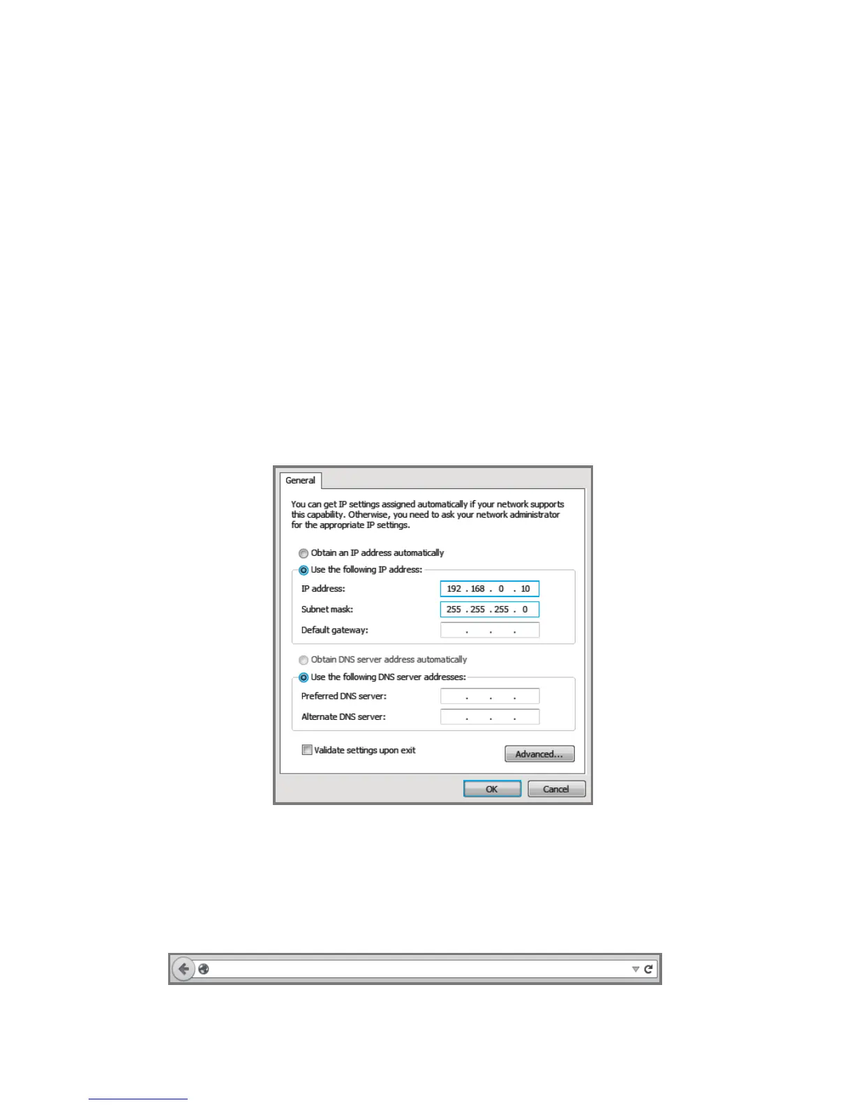 IP address 192.168.0.X (X ranges between 2 and 253, e.g. 192.168.0.10)