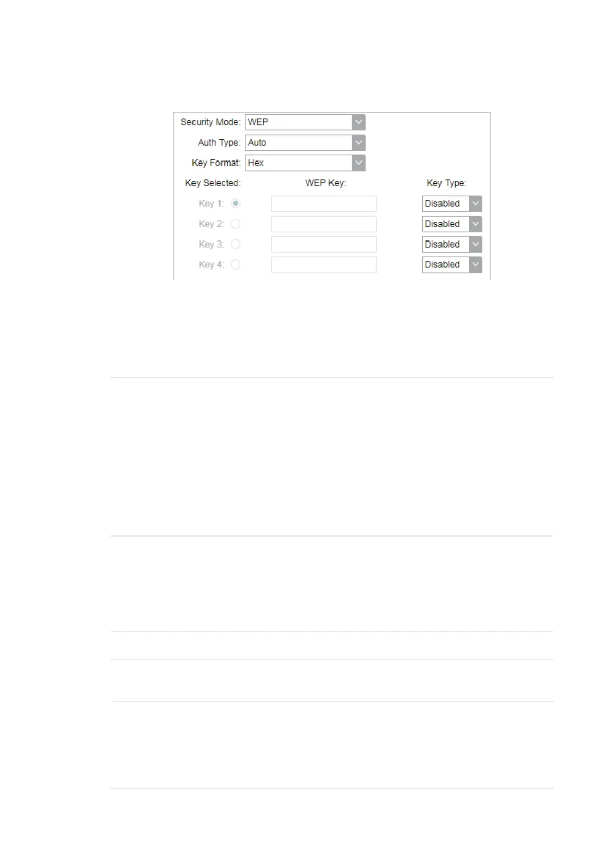 WEP Key Enter the WEP keys. The length and valid characters are determined by