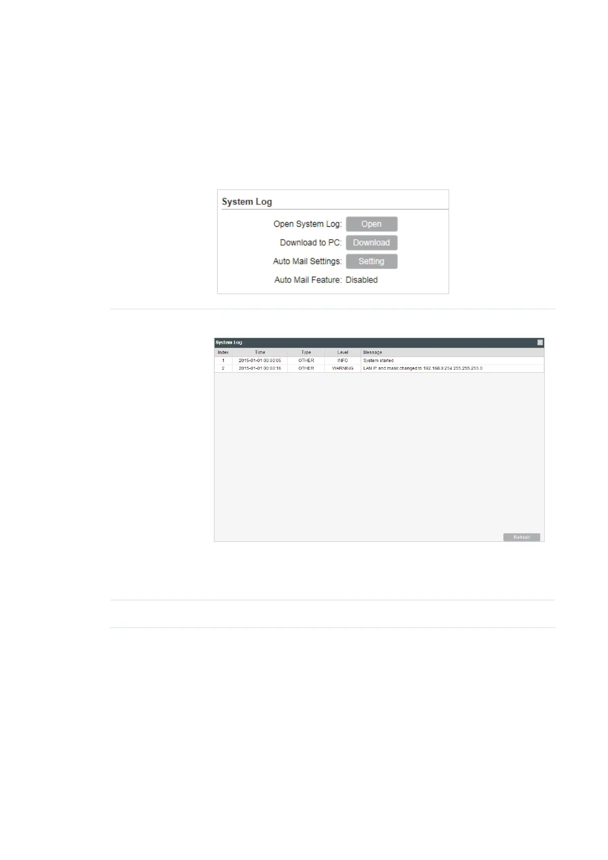 Go to the 0DQDJHPHQW page. In the 6\VWHP/RJ section, perform the following