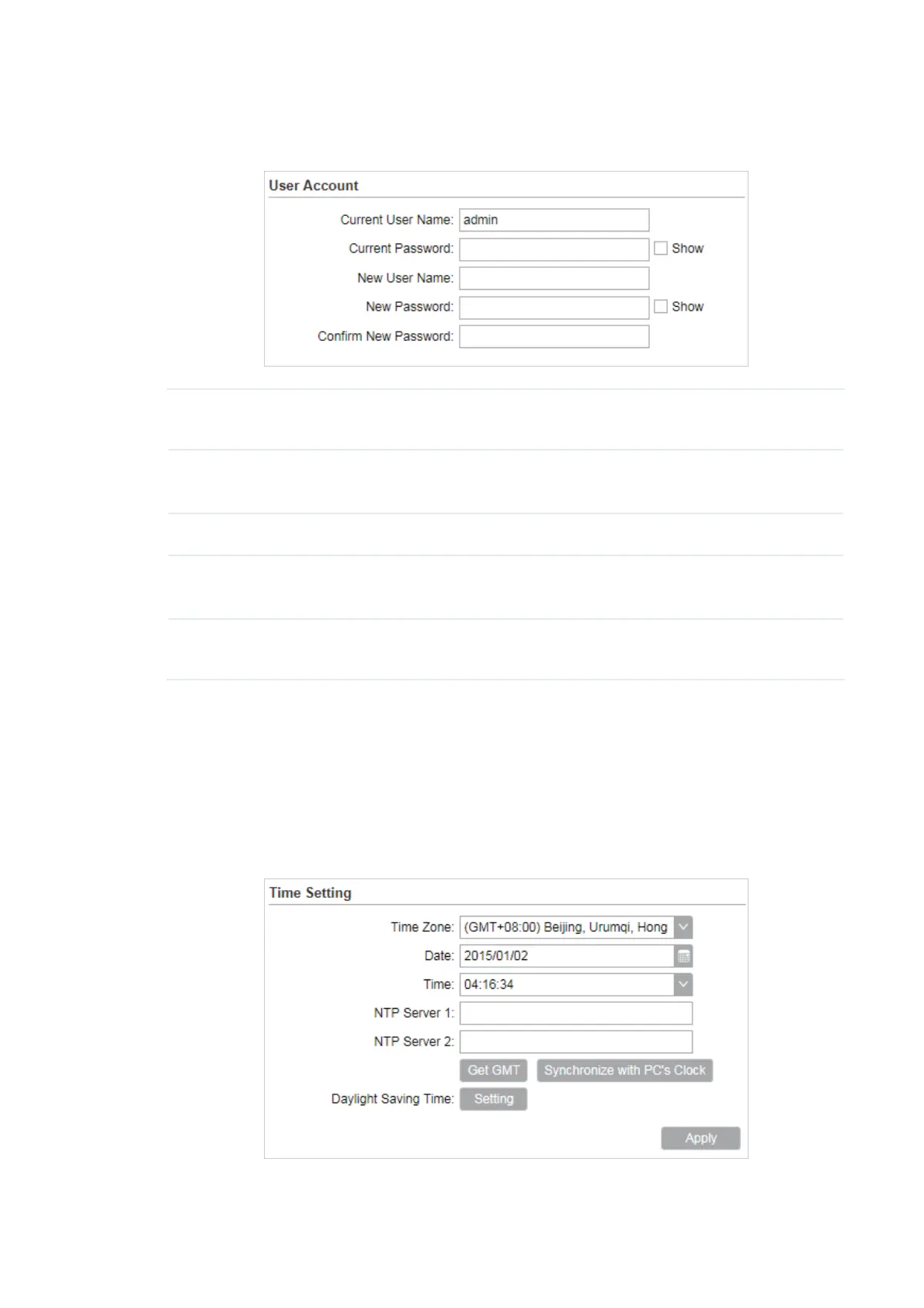 Go to the 6\VWHP page. In the 7LPH6HWWLQJV section, configure the system time.