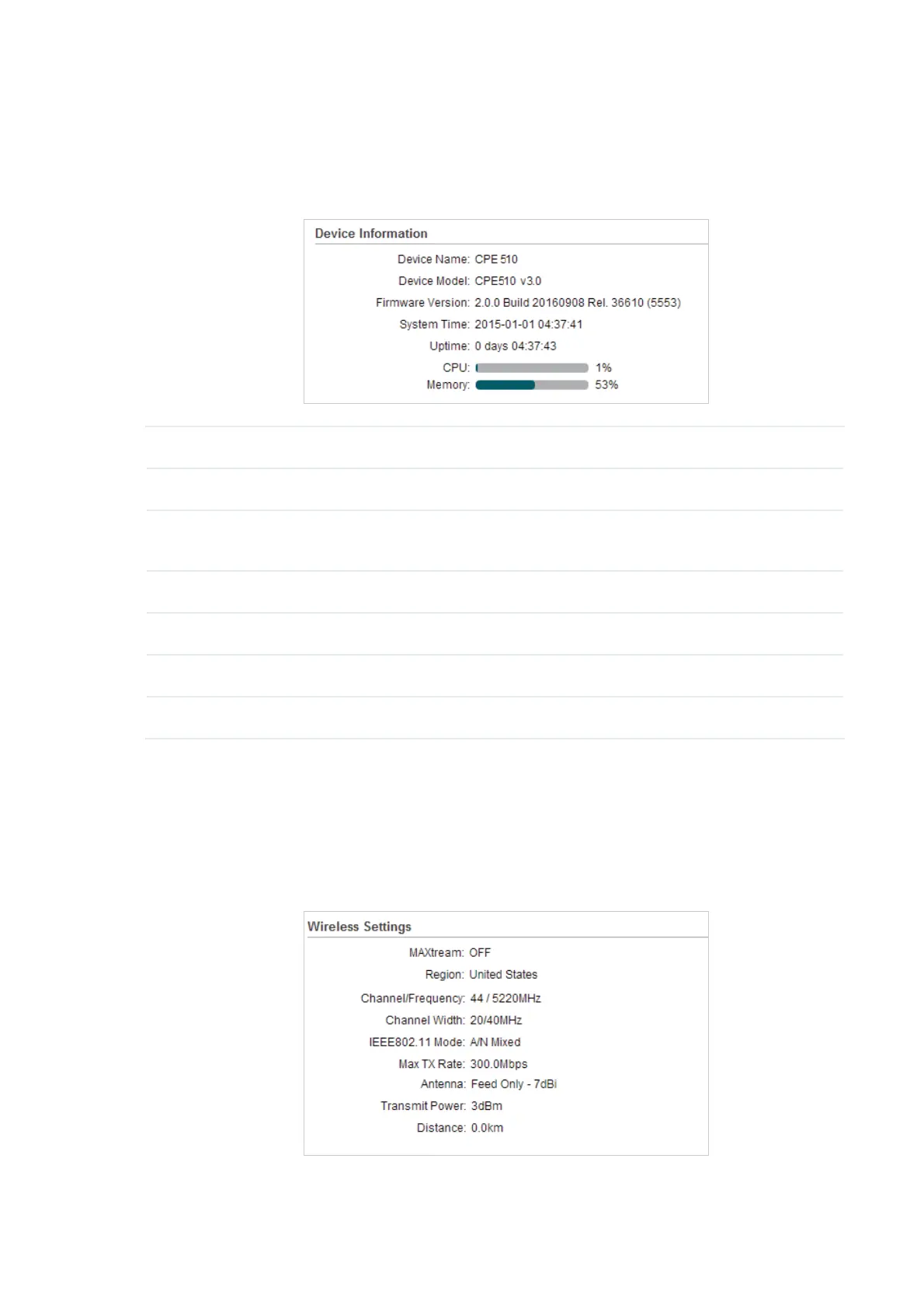 Go to the STATUS page. In the :LUHOHVV6HWWLQJV section, view the parameters of the