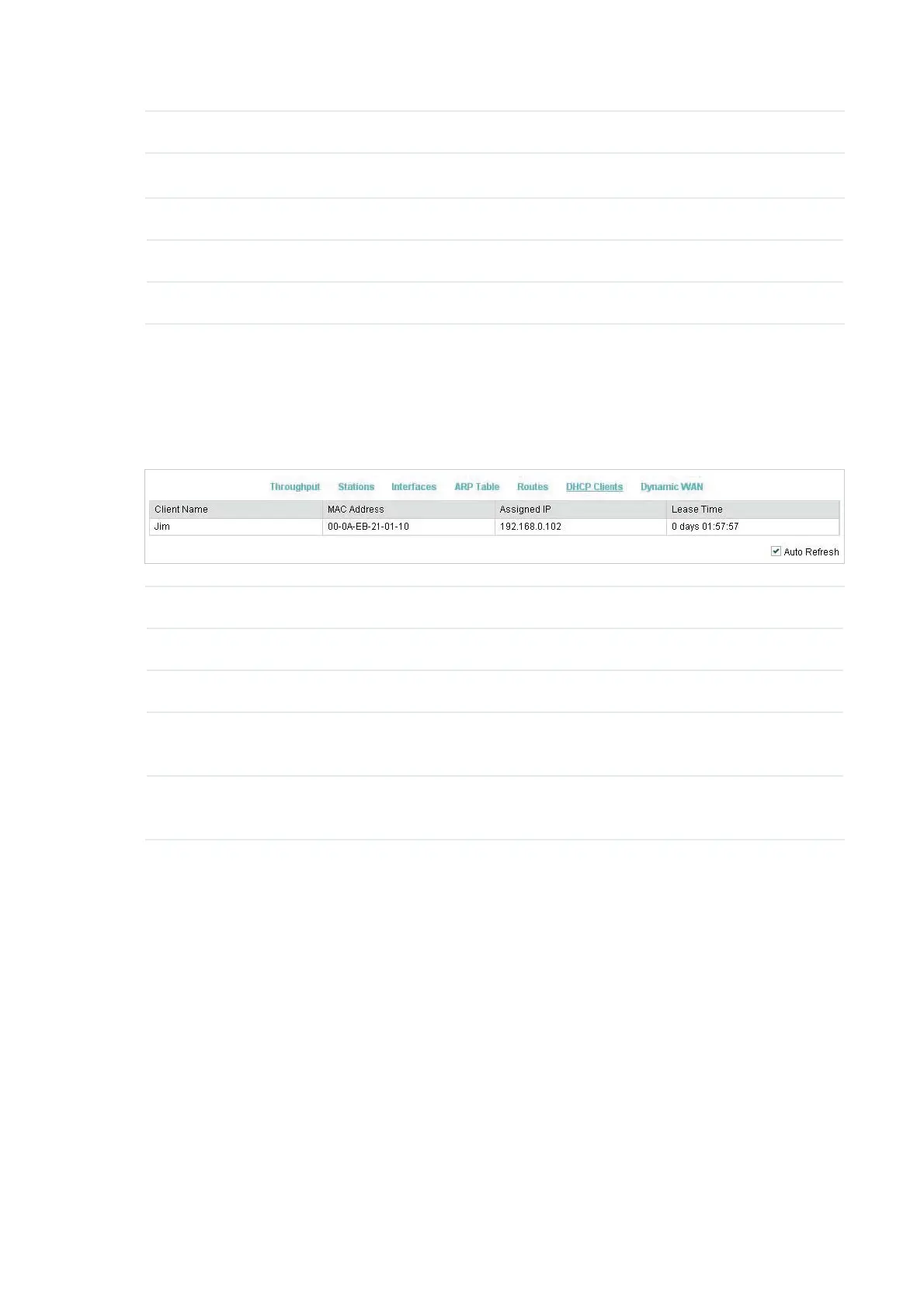 Lease Time Displays the time that the client leased. When the time expires, the clients