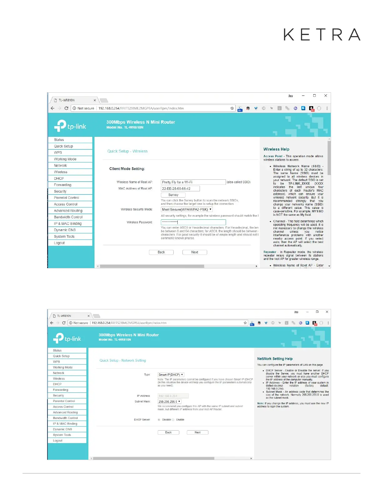 5. On the next page, enter the details of the hotspot to which you will be connecting. You can press “Survey”