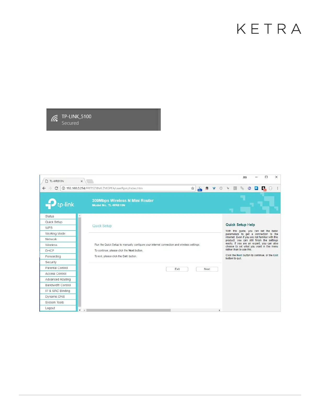password “admin”. This should take you to the Quick Setup page. Press “Next” to start