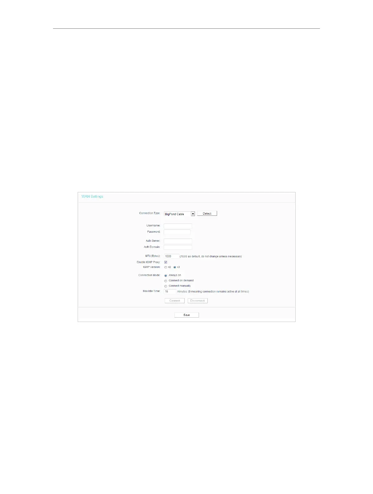 • Connect on Demand - In this mode, the Internet connection can be terminated