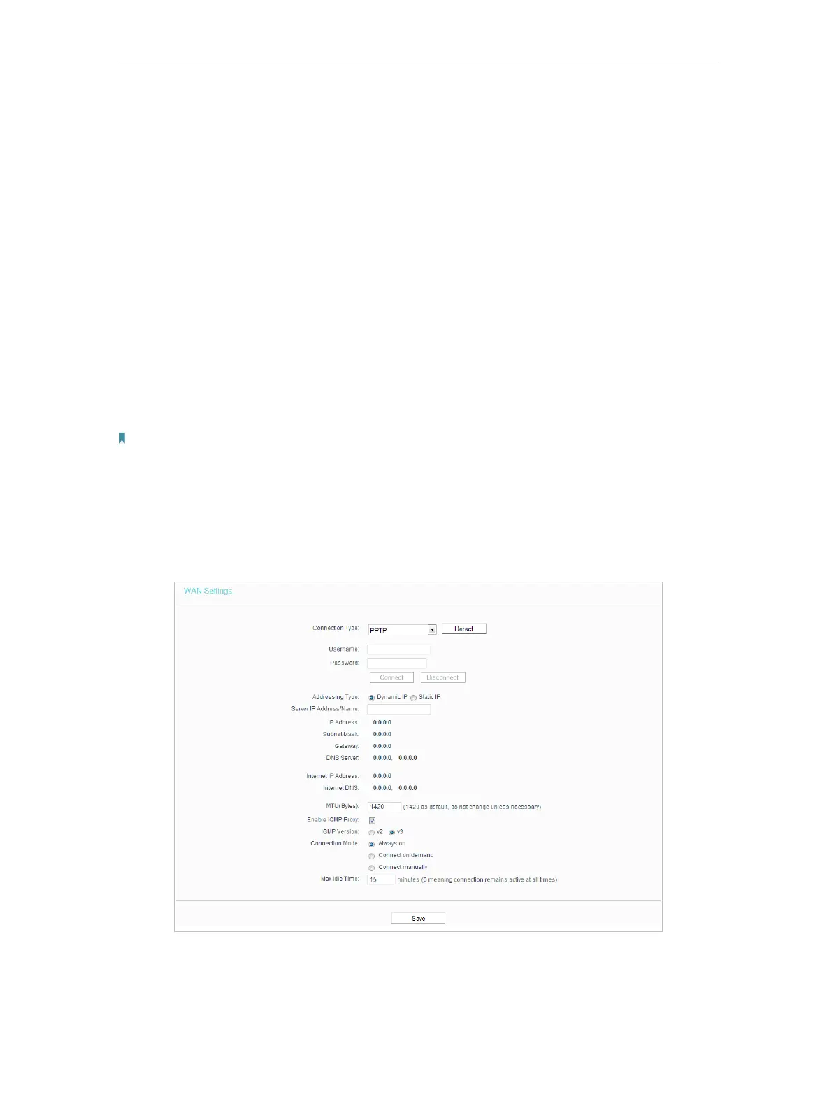 • Connect on Demand - In this mode, the Internet connection can be terminated