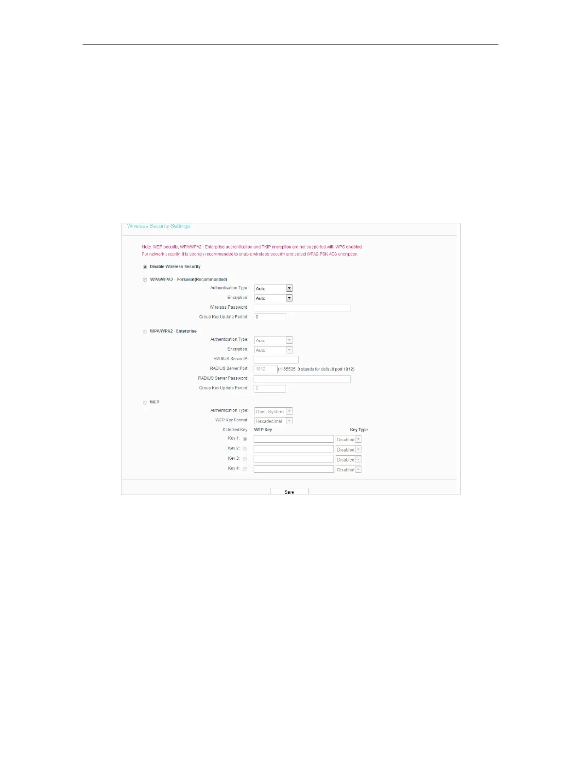 • Disable Wireless Security - The wireless security function can be enabled or disabled.