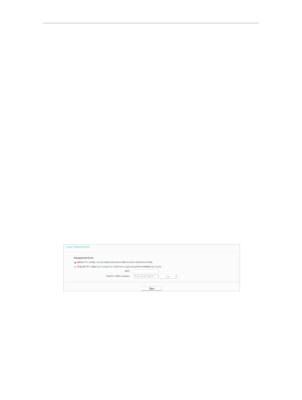 For example, if you want to allow PCs with specific MAC addresses to access the router’s