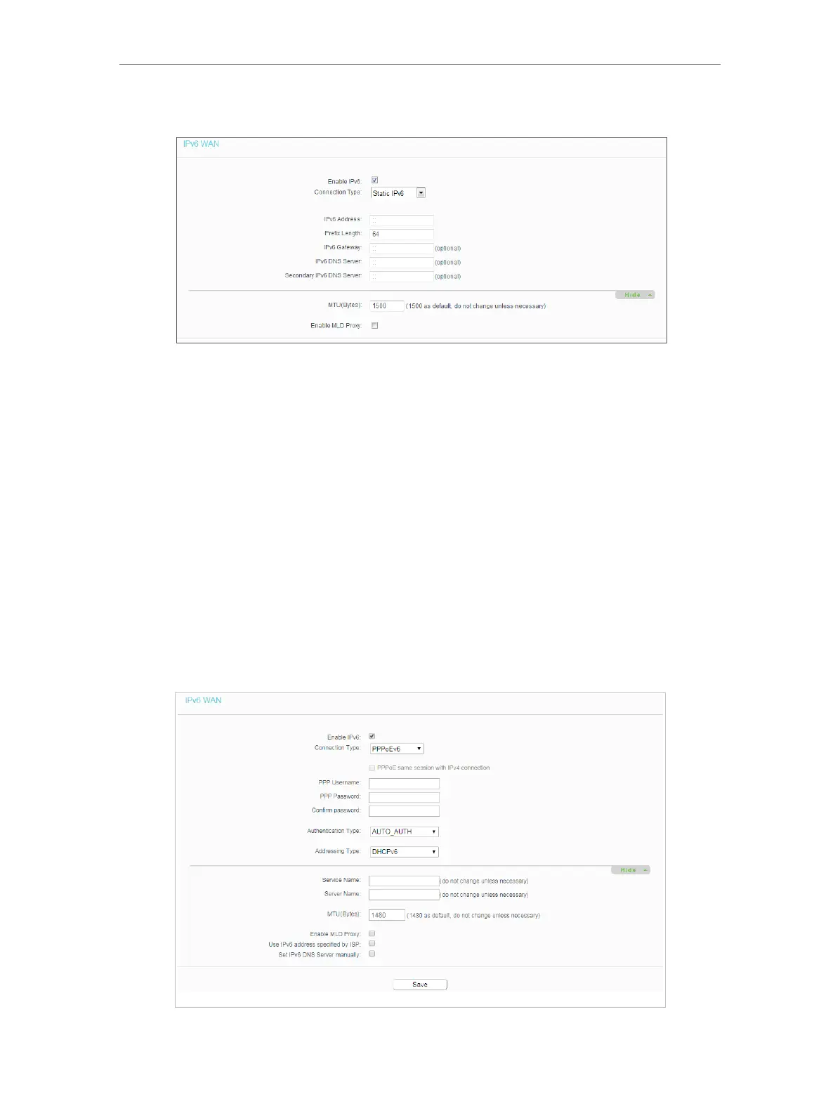 • Secondary IPv6 DNS Server - Enter another DNS IPv6 address provided by