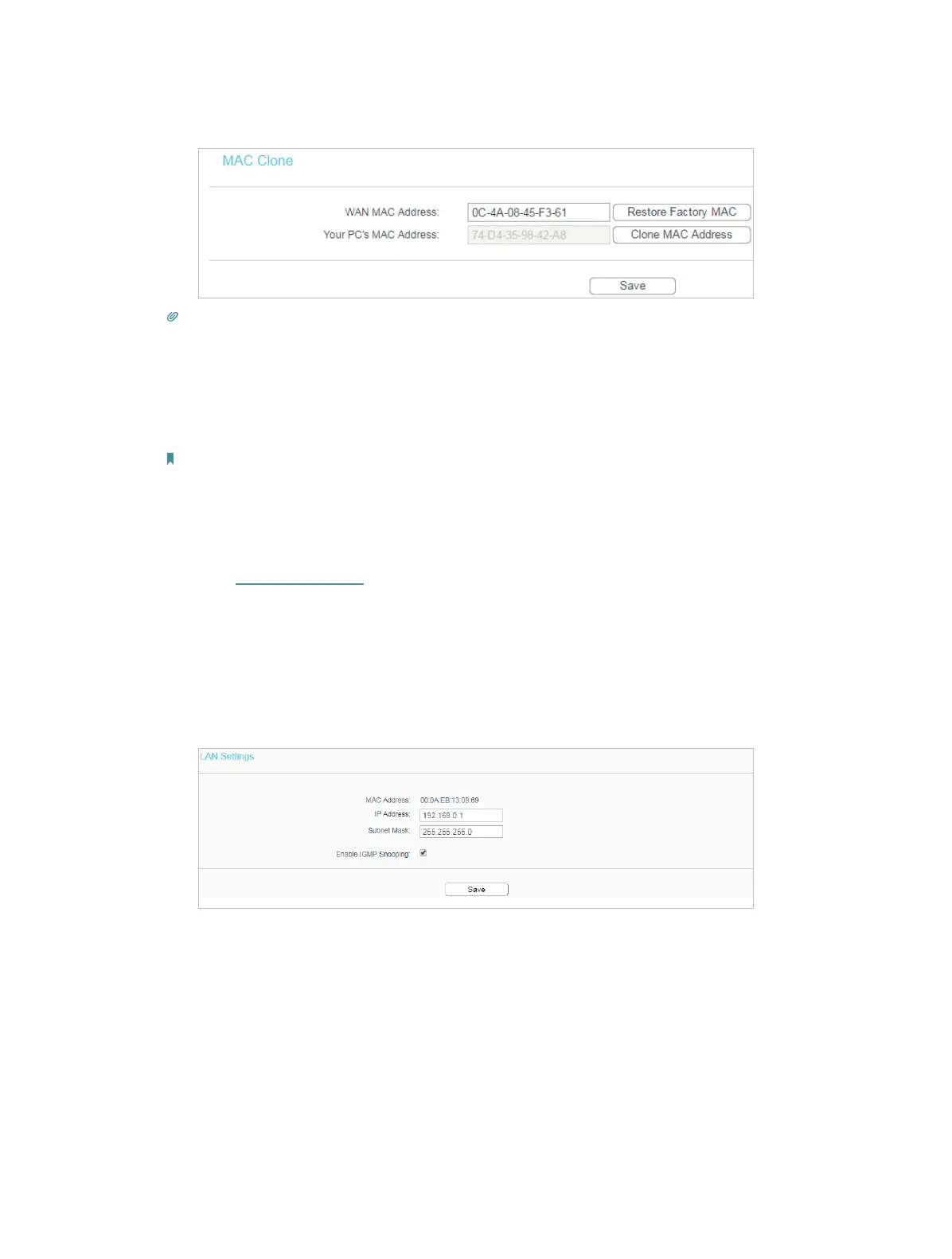 2 ) Go to Network > MAC Clone, select Clone MAC Address and click Save.