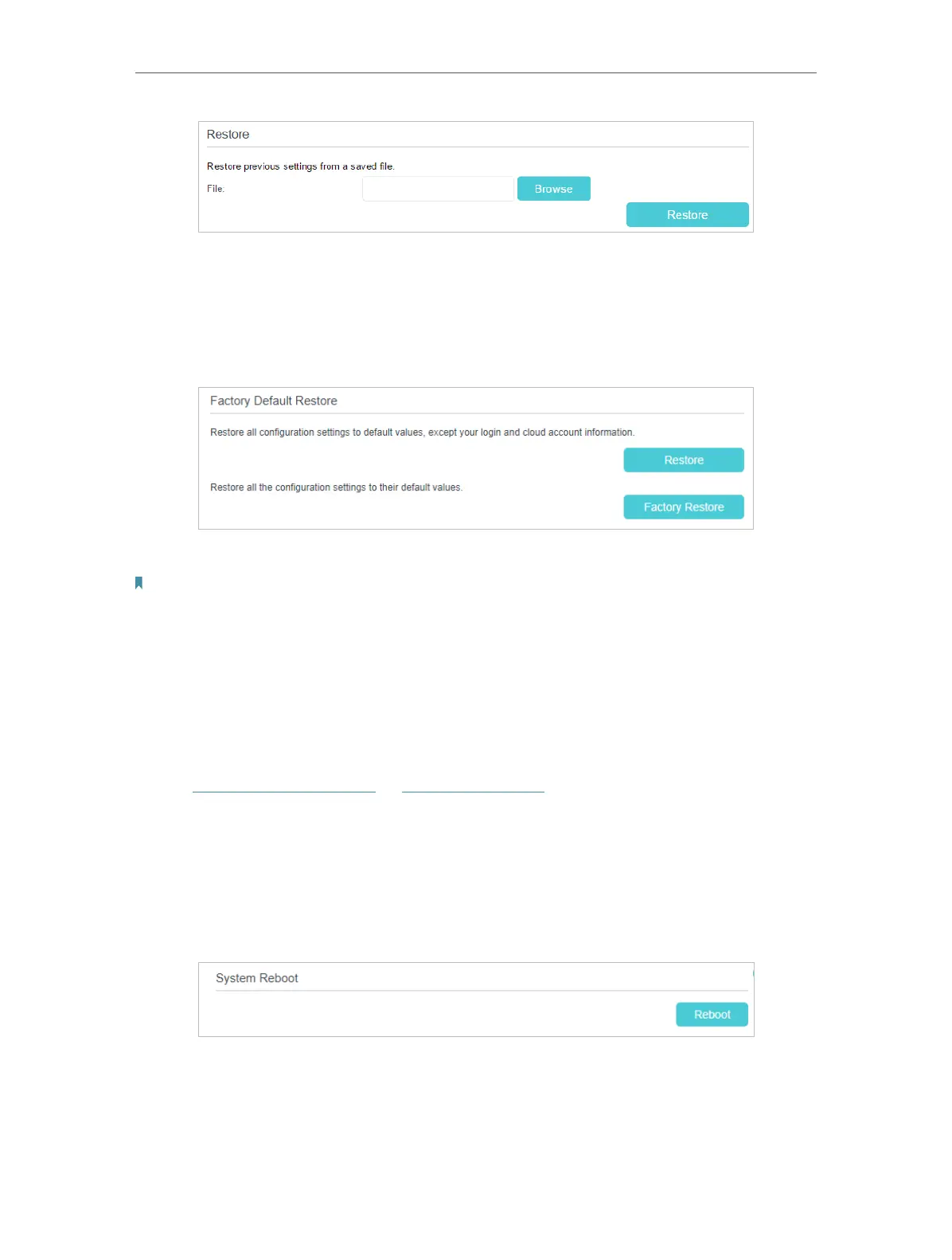 1 ) Locate the Factory Default Restore section, and click Factory Restore to reset