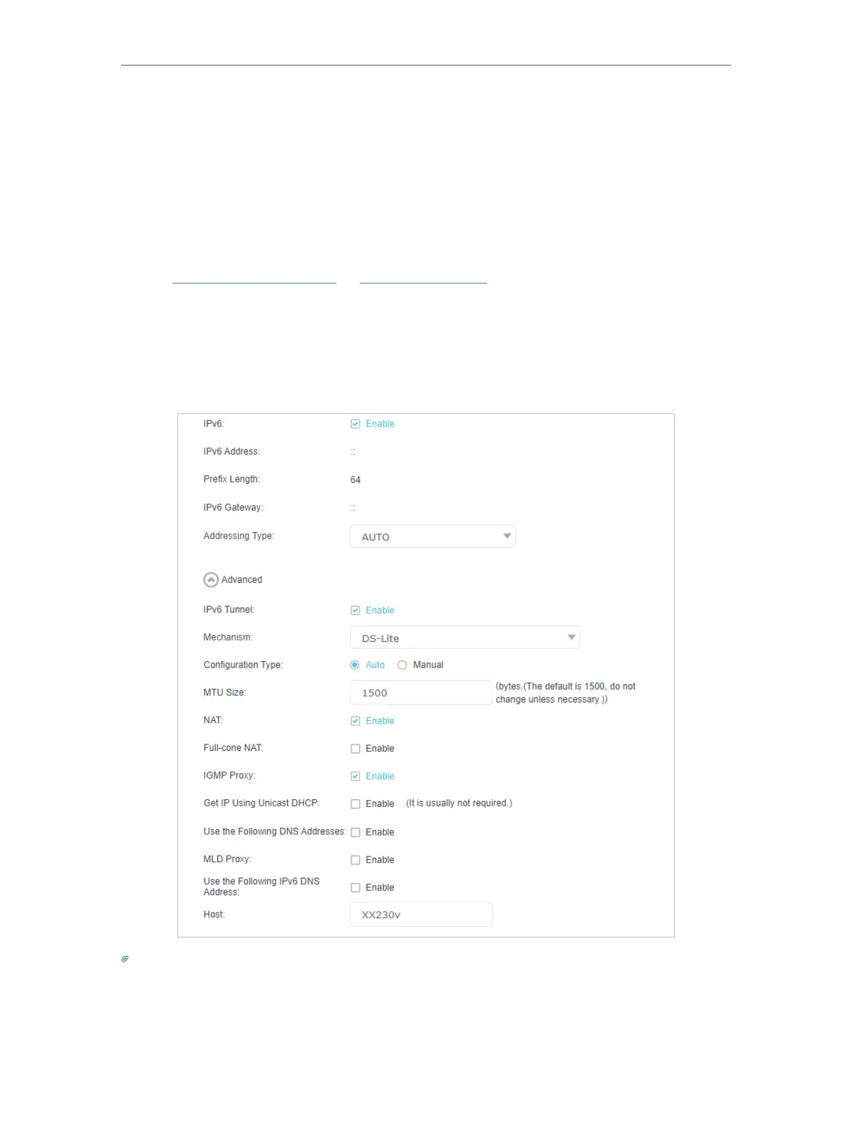3. Click Add and enable IPv6 and Click Advanced to view more advanced settings.