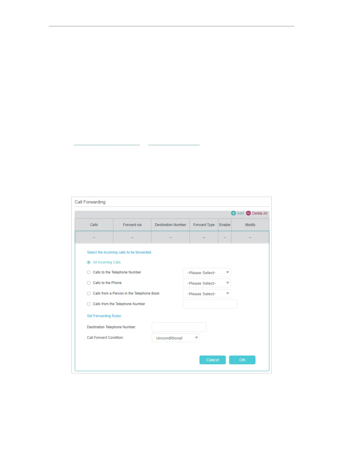All Incoming Calls: If this option is selected, all incoming calls will be forwarded.