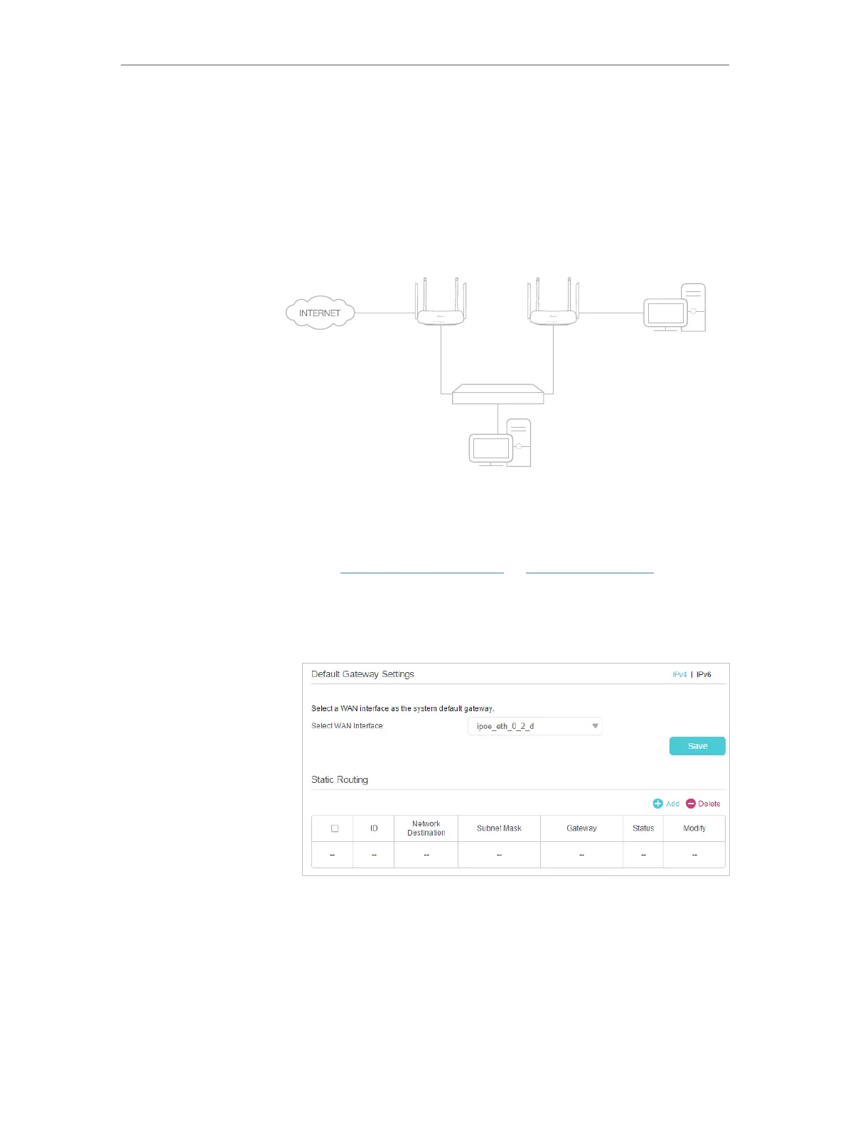 4. Click Add to add a new static routing entry. Finish the settings