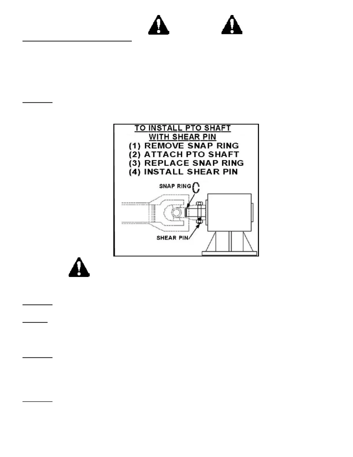 Pull apart PTO shaft and attach outer section to tractor PTO output shaft. NOTE: