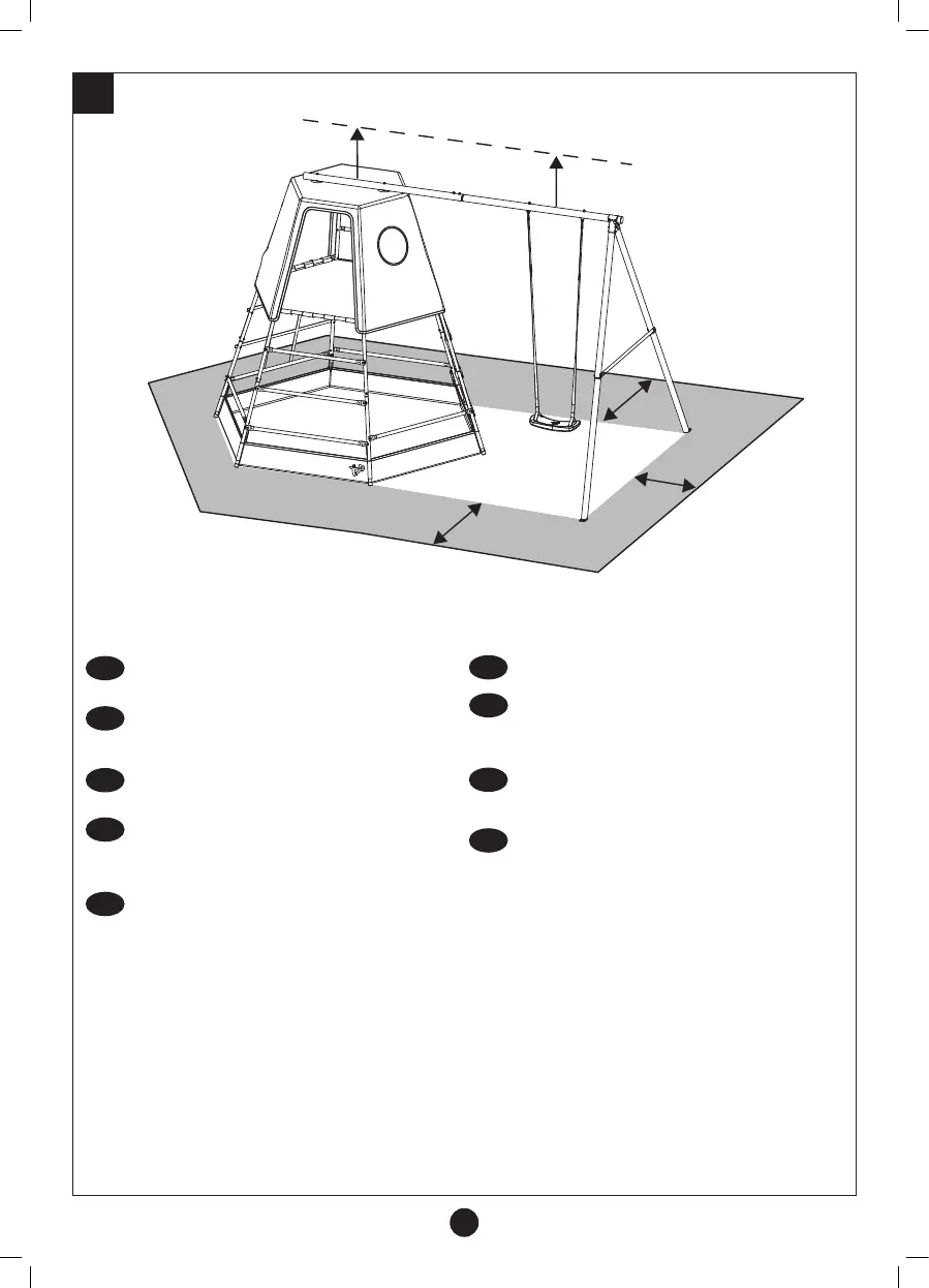 cm su tutti i lati attorno all’insieme da gioco e per 250 cm sopra