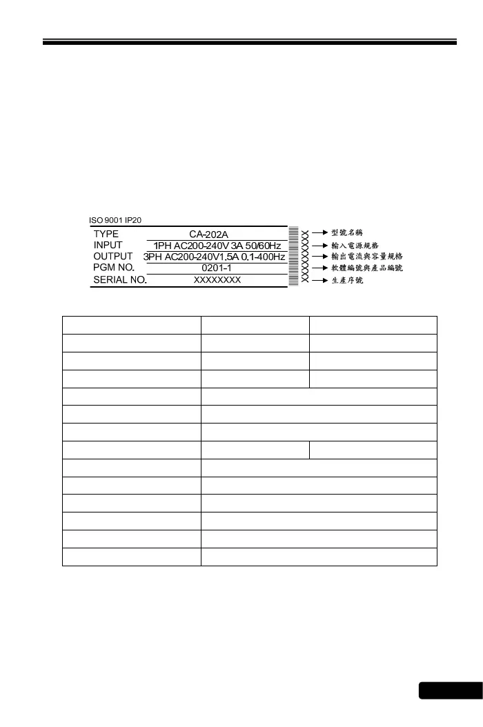 3. 查看變頻器上的銘牌內容,是否與您所訂購的產品規格相符。