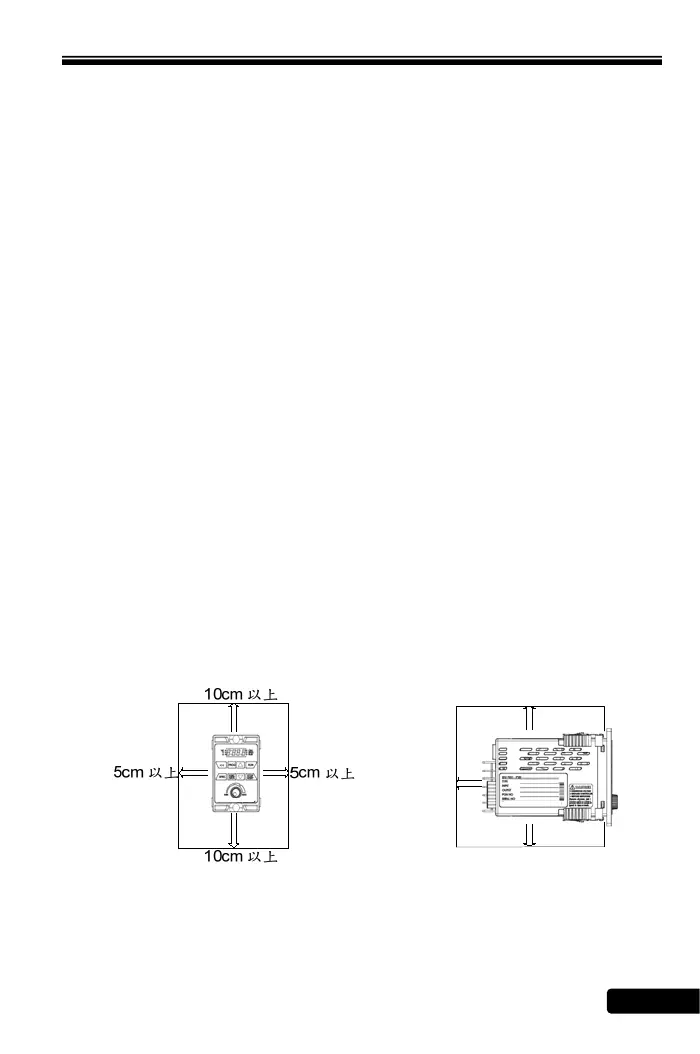 2-2-2 位置﹕變頻器運轉時基於散熱考量,機器周圍必須有足夠的通風散熱距