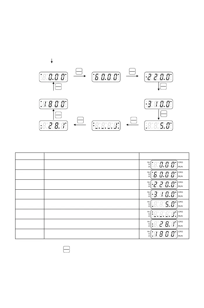 Display 8 Motor speed(RPM) (Hz, A, CRG: ON)
