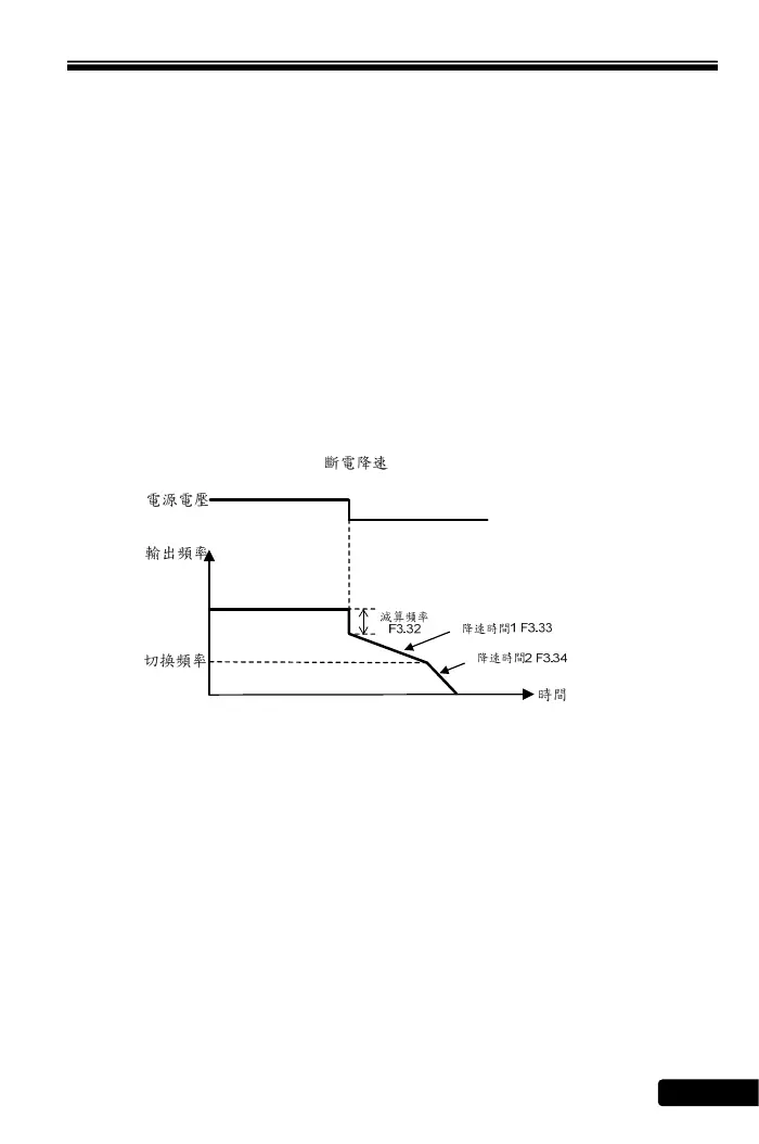 【F3.35】 斷電降速之切換頻率