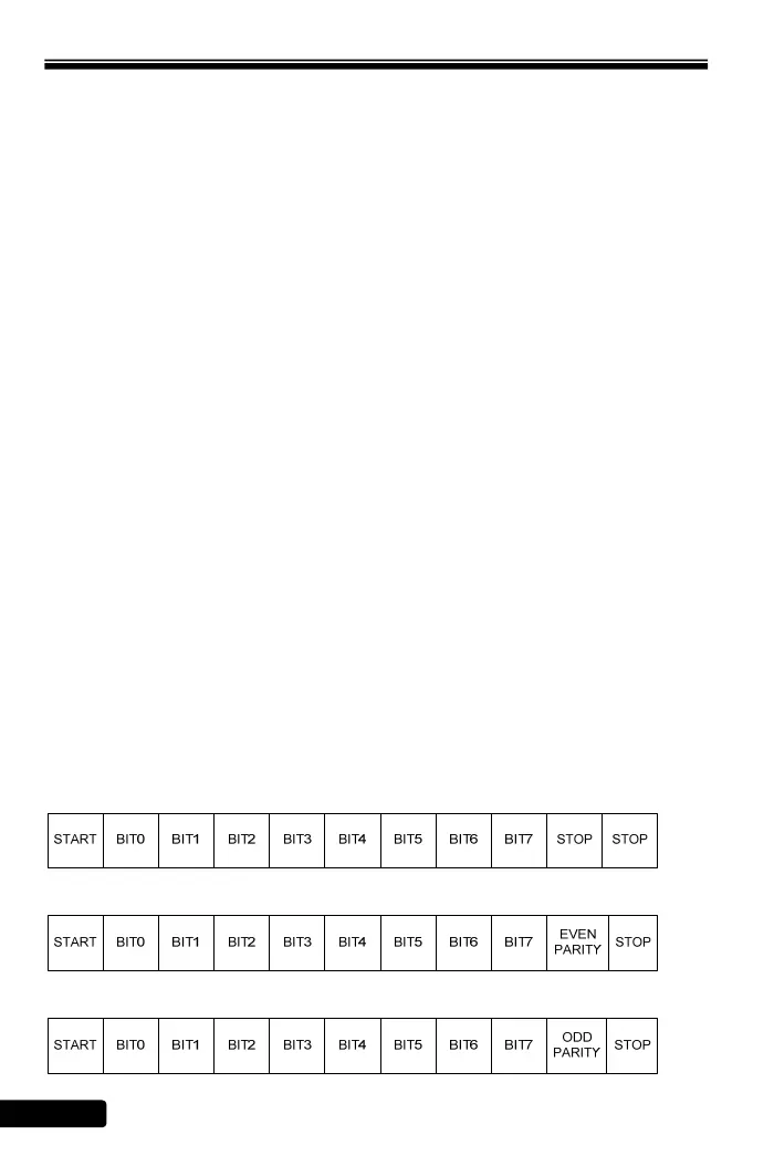 串列通訊為非同步串列傳輸,1 frame = 11 位元;格式分為以下三種型式: