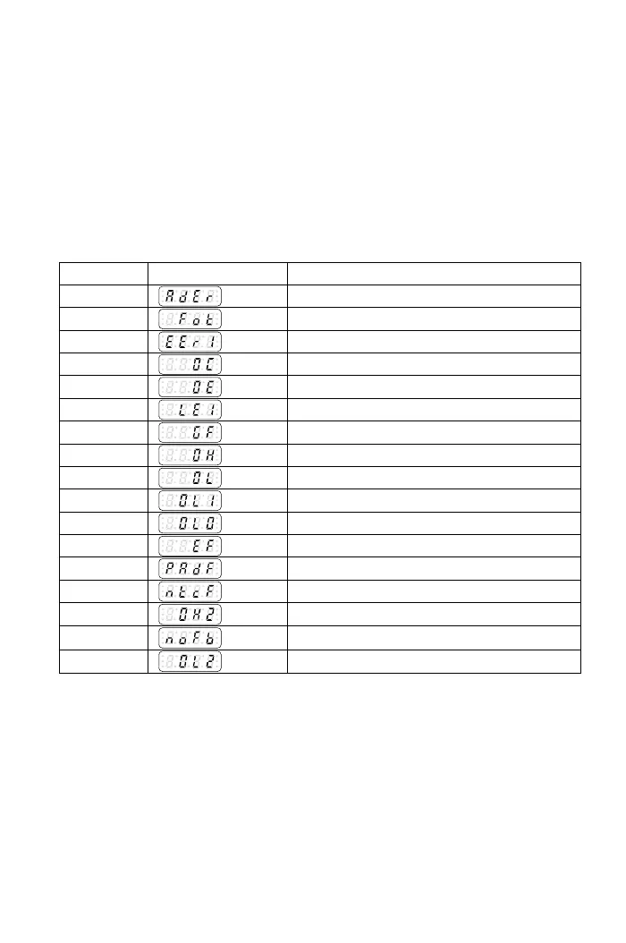Error code Drive display Description